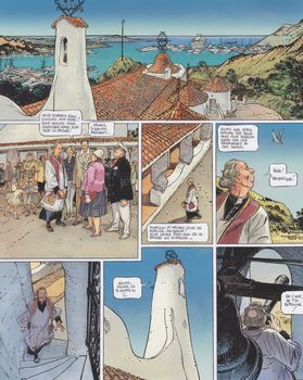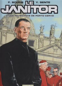 remarques: | 3ème volet de la série, 48 pages Rome, capitale de la chrétienté depuis 1600 ans, au Vatican, le cardinal Jonovovitch veut moderniser ses services de renseignement contre les ennemis de l'Eglise en établissant un réseau de satellites-espions avec les gains réalisés durant le week-end de Davos, ce sera l'opération "Power Point", la maîtrise de la foi >> p. 6 le conseil de guerre du Vatican à Porto-Cervo, nord-est de la Sardaigne, un prêtre photographe-amateur d'oiseaux observe un yacht où se déroule un curieux duel entre deux hommes déguisés, l'un en croisé, l'autre en infidèle ainsi que l'arrivée sur le yacht d'un cardinal de la curie identifié comme étant le cardinal di Origio à Rome, Vince raconte ses origines à la journaliste Laura Pride >> p. 21-24 Vince, bébé abandonné avec son frère jumeau et confiés aux bons soins du révérend noir méthodiste Hayes à Harlem, l'histoire des frères jumeaux Vincenzo et Fabrizio après coup, discussions au centre des opérations secrètes du Vatican sur les photos prises par frère Garulla à Porto Cervo, le cardinal di Origio est bien identifié et Vince reçoit la mission d'éclaircir le mystère du yacht, mais arrivé à destination, Vince trouvera le père Garulla assassiné dans sa chapelle, toutefois Vince parviendra à rejoindre le yacht et à détruire l'ordinateur portable enlevé au père Garulla, toutefois avant de prendre la fuite, il lui semble avoir reconnu son frère jumeau Fabrizio supposé mort appelé maintenant Armando et qui est maintenant au service des ennemis du Vatican >> p. 43 le jeu de mot sur l'habitante de la Sardaigne: la sardine >> la série continue en clopinant sans vraiment être très captivante, les sources d'inspiration de Sente (scénariste de Thorgal, repris de Van Hamme, et de Blake et Mortimer) semblent se tarir et son scénario n'est plus très convaincant tout comme d'ailleurs le graphisme de Boucq qui a perdu sa splendeur d'antan |