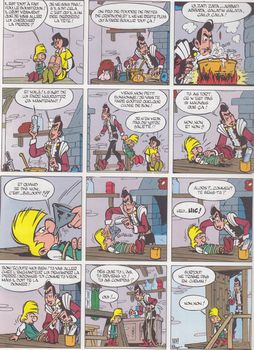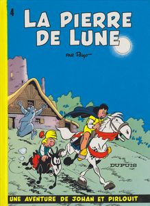 remarques: | réédition au dos carré jaune le sire flatteur de Boustroux est à la poursuite d'Oliver, l'assistant de l'enchanteur Homnibus, Olivier est blessé et porteur de la pierre de lune = une pierre aux pouvoirs merveilleux, se réfugie au château du roi Boustroux échoue pour s'emparer de la pierre de lune, mais réussit à dérober le grimoire de l'enchanteur Homnibus, un peu plus tard Boustroux avec ses hommes réussit à s'emparer de Johan et Pirlouit à qui il jette un sort pour qu'il aille lui-même récupérer la pierre de lune >> p. 9/10 la lutte contre les fantômes Boustroux révèle à Johan le secret de la pierre de lune, combinée avec le grimoire, elle permet de faire un philtre qui rend invincible son possesseur, mais Boustroux n'en profitera pas, car le comte de Tréville réussira à délivrer nos deux amis et Boustroux dans sa fuite se noiera avec le grimoire et la pierre de lune >> une aventure plutôt moyenne de Johan et Pirlouit, malgré la pierre de lune qui elle n'est pas tombée de la dernière lune |