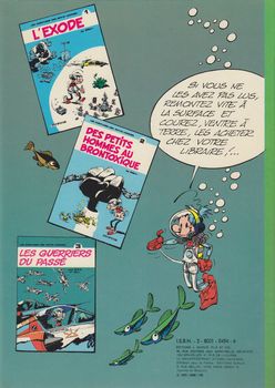 remarques: | édition originale, dos rond vert une auto disparait dans un lac près d'Espalion 2, les petits hommes organisent une opération de sauvetage et découvrent petit à petit les coulisses d'un passage sous-marin entre un lac et la mer qui sert à un trafic de contrebande en utilisant des torpilles sous-marines téléguidées >> p. 17 des rails sous le lac >> une idée de scénario assez originale, mais le texte reste malgré tout faible et la fin du récit patine sur les rails du lac, le graphisme restant respectable |