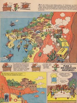 remarques: | album broché collection JE no 26, 64 pages avec deux épisodes 1) la revanche d'Anthracite annoncé comme les nouvelles aventures de Chlorophylle et Minimum à Coquefredouille, mais accompagnés déjà de mademoiselle Torpille alors qu'Anthracite purge sa peine à la prison de l'île du requin et échoue toujours dans ses tentatives d'évasion le général Casse-Tout (qui a remplacé le général Bidasse) fait exploser, pour fêter l'anniversaire du roi, une bombe au bithure de zytron, inventée par le prof. Surboum à cette occasion, Anthracite réussit sa dernière tentative d'évasion en se jouant de Médor son gardien, tous les moyens sont mis en oeuvre pour le retrouver (tank, voiture, avion) >> p. 17 l'oiseau-aviateur entretemps Anthracite se rend chez le prof Surboum et grâce au sérum de vérité lui fait révéler l'endroit où est entreposé la deuxième bombe au zitron et la dérobe avec un ballon-aérostat, en possession de la bombe, il fait chanter le roi et se fait nommer chef de la police de Coquefredouille 2/ Chlorophylle joue et gagne Chlorophylle et Minimum recherchés par la police ont pris le maquis alors qu'Anthracite après avoir fait abdiquer le roi >> p. 35 se fait couronner roi de Coquefredouille et fait libérer le duc Bihoreau de Bellerente qui devient le chef de la police secrète Chlorophylle et Minimum préparent la révolution, ils sont rejoints par les partisans du roi dont le général Biquet (qui a remplacé le général Casse-Tout) et par le prof Surboum >> p. 42 les courtisans du nouveau roi sont encore plus moches que moi (Anthracite dixit) le plan de Torpille déguisée en vieille dame qui livre Chlorophylle à Anthracite pour gagner sa confiance, dame Torpille devient sa conseillère et en profite pour libérer Mitron XIII et Chlorophylle, finalement la bombe détenue par Anthracite sera retrouvée et neutralisée et Anthracite, renversé par ses propres troupes,sera à nouveau emprisonné mais Mitron XIII conserve la garde personnelle des "chiens de guerre" créée par Anthracite n.b. admirable petite satire finale de notre société >> un bon graphisme et un scénario intéressant bien imaginé, le premier épisode étant le meilleur |