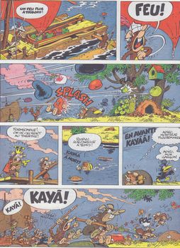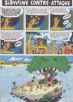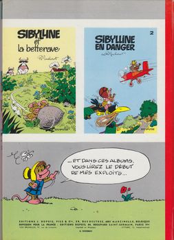 remarques: | album Dupuis 1971 EO avec dos rond rouge, 62 pages, album divisé en deux épisodes: 1/ - Sibylline contre-attaque Anathème lance l'armée des rats contre les résistants de >> p. 3 l'île aux cailloux le brigadier Verboten déguisé en rat part avec la mission de saborder la flotte des rats noirs >> p. 8/9 des histoires de mots de passe mais Verboten se fait capturer et Sibylline décide alors de partir à son secours >> p. 17 la flotte d'invasion et le tir de barrage l'île aux cailloux est finalement envahie par les rats, Sibylline réussissantt à s'échapper grâce à Flouzemaker >> p. 19 le drapeau de l'armée d'Anathème avec son emblème "le poing sur l'oeil" toutefois, Sibylline lui ayant échappé, Anathème n'est pas satisfait de sa victoire alors que Sibylline recherche maintenant des alliés pour contre-attaquer les rats et après avoir sauvé une petite abeille de la noyade, Sibylline devient soeur de miel honoraire et les abeilles deviennent les alliées de Sibylline; les rats d'Anathème sont chassés de l'île par les abeilles et obligés de se soumettre car les abeilles s'installent définitivement sur l'île 2/ - Sibylline et les abeilles >> p. 33 la visite des canards Isidore et Clarinette sur l'île aux cailloux baptisée maintenant le bosquet joyeux, entretemps Anathème rumine sa vengeance et cherche à se débarrasser des abeilles >> p. 38 pour le moment des relations pacifiques s'établissent avec les rats Anathème élabore un plan et fait semblant avec son armée de quitter le pays, mais les rats reviennent durant la nuit et se cachent dans une vieille ferme abandonnée et selon la tactique du cheval de Troie, des rats s'introduisent dans le camp de Sibylline et bouchent les trous des ruches pour emprisonner les abeilles >> p. 52/53 la torture à la Guillaume Tell la ruse d'Anathème se retourne contre lui, car les abeilles avaient prévu une sortie de secours et refoulent les rats et afin que les abeilles durant l'hiver n'hibernent pas, Sibylinne leur confectionne de petits maillots de laine, ce qui leur permettre de surveiller les rats durant les périodes de froid cette fois Anathème et ses rats sont bel et bien vaincus >> cet album est un petit chef-d'oeuvre tant pour le graphisme que pour le scénario, le meilleur album de la série et une Sibylline sublime |