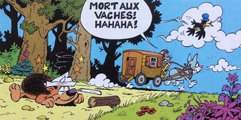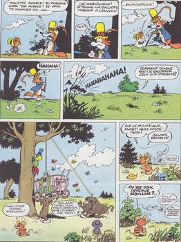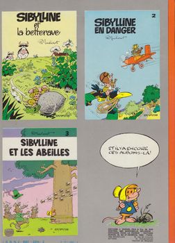 remarques: | album EO Dupuis 1974, dos rond rouge, dès le tome 4, les albums passent à 46 pages et non plus à 62 pages, album en deux épisodes: 1/ - Sibylline et le petit cirque Sibylline et Taboum en vacances en route pour la Costa Brava rencontrent un petit cirque formé de Gloglo le perroquet ventriloque, Gustave le chat cascadeur, Alphonse le chien-cheval et Gouigoui le dresseur de papillons, rencontre aussi avec Sylvestre, le lutin du bois, transformé en rat des champs par l'enchanteur Pistolard l'équipe du cirque avec Sibylline et Taboum décident d'aider le lutin et partent à la recherche de la pierre verte qui rendra au lutin Sylvestre son physique de lutin >> p. 19 rencontre avec Pistolard qui grâce à sa baguette magique transforme Sibylline en moustique et Sylvestre en mouche, mais réussissant à endormir Pistolard, Gustave le chat utilise la baguette pour transformer aussi Pistolard en mouche finalement, en trouvant la pierre verte, tout ce petit monde retrouve son aspect physique original y compris Pistolard, sa baguette magique maintenant détruite, qui devient inoffensif >> p. 32 rencontre au final avec Anathème qui a été déchu de son titre de roi par les rats et qui rejoint le groupe de Sibylline 2/ Sibylline et la baguette rose retour au pays de Sibylline où nos amis doivent résoudre le mystère du castel de Clapotis-sur-Lambin; le mystère est résolu, c'est Pistolard qui a enlevé un petit magicien pour lui faire restituer sa baguette magique, mais Pistolard recevra maintenant de Clarabine, la fée des bois, une baguette rose qui ne réalisera plus à l'avenir que de bons souhaits >> p. 46 Pistolard qui devient un bon enchanteur >> une petite histoire enfantine et enchanteresse qui, si amusante, est aussi sans prétention et qui s'éloigne un peu des aventures précédentes de Sibylline, toutefois le graphisme et le coloriage restent de bonne fracture |