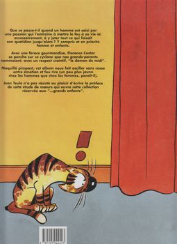 remarques: | le démon de midi = midlife (la moitié de la vie) >> p. 8 la passion qui rend fou, les hommes mûrissent, les femmes vieillissent >> p. 10 tranches de vie de famille et les premiers symptômes du démon de midi 1/ la mauvaise humeur, 2) la rentrée tardive 3) tout est chiant 4) dégradation des liens affectifs 5) remise en forme alors l'épouse découvre la présence d'une maîtresse, puis c'est la séparation, les sentiments de culpabilité, essai de réconciliation, enfin c'est dans une communauté féminine que l'épouse délaissée retrouve du réconfort, >> p. 29 le dicton: "changement d'herbage réjouit les veaux" >> un récit genre tranches de vie avec toutes les variations sur la séparation d'un couple, les expériences d'une femme avec une ode à la féminité, récit assez réaliste, mais pas toujours conforme (on distingue les intellectuels et les non-intellectuels) quelque peu peut'être biographie de Florence Cestac, mais si sa vie fait le sujet d'un album BD, cela ne fait pas encore un succès de littérature BD annexes - couvertures Ier et 4ème plat - page de garde - extrait de page |