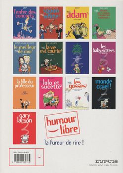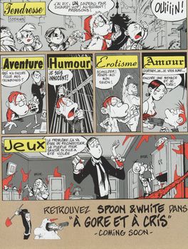 remarques: | recueils de gags et extraits inédits d'épisodes de bande dessinée par : - Zep (Titeuf) - Léturgie (Spoon and White, >> p. 12 les sources d'information de Courtney Balconi) - Basset (Adam) - Midam+Clarke - Dumez - Thiriet/Larcenet - Boucq - Godard/Valda - Sfar/Guibert - Hardy (Lolo et Sucette) - Carabal - Geerts - Gary Larson - >> échantillons d'humour libre avec quelques bons gags, mais rien d'extraordinaire sauf pour le graphisme de Léturgie, Hardy et Boucq annexes - couverture Ier et 4ème plat de l'album - page Spoon & White - deux extraits de page - les sources d'information n.b. dossier archives: >> voir sous Leturgie y compris Spoon and White |