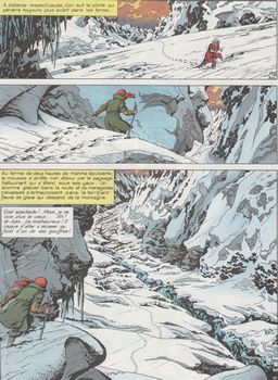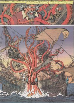 remarques: | expédition en Arctique à la recherche du détroit de Baerentz, Cori et Harm sont embarqués sur une baleinière qui dérive et s'échoue sur la banquise arctique chasse à la baleine et chasse au trésor suite à la découverte par Gerrit le pilote de la baleinière qui lors d'une expédition précédente abandonna ses compagnons sur la banquise >> p. 3-5 les 3 premières pages sans aucun texte >> p. 11 le rêve de Cori avec le grand Craeck = une pieuvre géante >> p. 14 à noter: la plateforme suspendue formant la table de l'équipage >> p. 19 le phénomène des trois soleils >> p. 25 la baleinière échouée sur la banquise >> p. 33 par l'Euskel Eresiak, exclamation apparentée à des chansons basques, mais inconnue au wikipedia >> p. 41 le trésor des glaces et le crime du pilote ne sera plus que l'affaire de Dieu >> assez bon graphisme, toutefois un album moins réussi que les deux précédents, une qualité d'impression quelque peu en baisse et scénario très moyen, mais les fins de page (la chute) sont bien imaginées annexes - couverture de l'album - pages extraites de l'album - tableau sur la mort de Barentz par Christiaan Lodewyck (1836) Information - Willem Barentsz (orthographié parfois Barents ou Barentz), (1550-1597) était un navigateur et explorateur néerlandais, pionnier des expéditions dans les eaux du Grand Nord - son troisième voyage échoua également et lui coûta la vie, il disposait alors de deux bateaux, et aperçut l'Île aux Ours et le Spitzberg, où les deux bateaux se séparèrent, le vaisseau de Barents, après avoir longé le nord de la Nouvelle-Zemble, fut emprisonné dans les glaces et l'équipage fut obligé d'hiverner en Nouvelle-Zemble, démontant une partie de leur navire pour survivre; au printemps suivant, comme les conditions météorologiques ne s'amélioraient pas, Barentz décida de quitter la Nouvelle-Zemble afin de trouver une voie de salut, la plupart des membres d'équipage s'en sortirent, mais Barentsz lui-même, trop affaibli, mourut le 20 juin 1597 une version romancée et dessinée, est rapportée par Bob de Moor dans son ouvrage l'expédition maudite dans la série de Cori le Moussaillon, en 1987 - la mer de Barents porte son nom, en sa mémoire - la Nouvelle-Zemble ou Nouvelle Terre en russe est un archipel russe des mers de Kara et de Barents situé au-delà du 70e parallèle nord dans le prolongement de l'Oural |