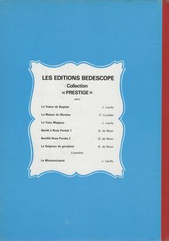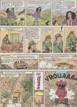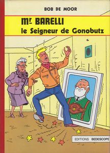 remarques: | album Bédéscope EO 1980 numeroté 452 de 32 pages Barelli et sa tante Sofia ainsi que leur oncle Vittorio, seigneur de Gonobutz, sont impliqués dans des aventures de succession et de corruption (spéculation immobilière) dans le petit royaume de Gonobutz = Rocca Negro (genre de Liechtenstein), la journaliste Anna Nannah y participera également activement Georges Barelli aidera son oncle à démasquer les criminels en prenant la place de son oncle et en se déguisant en seigneur de Gonobutz pour la bonne cause >> p. 7 le poid lourd kidnappeur q ui fait fonction de wagon-lit en direction de Gonobutz >> p. 10 le langage particulier des gens de Rocca Negro >> p. 11 le château de Gonobutz >> p. 12 le soldat Adolphe qui ressemble à Hitler >> un bon graphisme, mais ni le scénario ni le texte ne sont vraiment convaincants Information - réédition de cet album par Lombard en 2011 sans changement - pas de couverture particulière sur cet épisode dans le journal Tintin, mais un dessin y relatif pour l'album no 6 du journal Nouveau Tintin (1976) où le récit fut publié du 20.7.1976 au 7.9.1976 annexes - couverture Ier et 4ème plat de l'album - deux extraits de page - couverture album no 6 Nouveau Tintin |