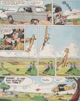remarques: | album 48 pages, dernier titre: un DC8 a disparu le traditionnel accueil des bleus à la base aérienne militaire de Creil dans l'Oise et pour le moment le plus grand danger pour la base, c'est Laverdure >> p. 3 ouf! le congé est fini (Tanguy dixit) et Laverdureest traité d'ami de Françoise Sagan (?) ainsi que de clown du cirque Pinder >> p. 12 deuxième gag avec la tarte à la crème, Laverdure couvert de petits suisses >> p. 16 les dégâts occasionnés par Laverdure = au total NF 2020.- dont une porte vitrée pour FF 20.- (les prix ne sont pas encore trop élevés en 1963) >> p. 18 les belges sont aussi de la partie avec Charlier (saveïe-vous) mission de couverture par Tanguy et Laverdure pour la protection à la base de Melun-Villaroche d'essais avec un prototype ultra-secret à décollage vertical >> p. 19 le prototype ultrasecret à décollage vertical >> p. 21 Laverdure ne prend pas grand soin de ses albums de bande dessinée suite à une erreur de manoeuvre sur un ballon aérostier, l'avion de Laverdure doit atterrir en catastrophe >> p. 24 l'aérostière lady Clapsabooth mais des ennemis à nouveau inconnus s'intéressent de près au nouveau prototype et déclanchent le plan "lynx", un plan par ailleurs excellent avec avion piège = engin téléguidé tiré d'une platforme amovible (mobile) et un avion de reconnaissance lâché par un gros avion de transport, la fusée détournera l'attention des chasseurs de protection français et permettra à l'avion de reconnaissance de photographier le prototype, mais c'était sans compter avec la perspicacité de Tanguy qui fait déjouer les plans de l'adversaire et l'avion de reconnaissance finira en explosant sur une ligne de haute tension après avoir suivi le cours de la Seine pour tenter de s'échapper >> p.38 la fusée de diversion camouflée dans un camion de foin >> p. 47 l'avion de reconnaissance percutant la ligne à haute tension avec les câbles cisaillés net qui cravachent l'air dans un geyser d'étincelles et dans une gigantesque lueur bleuâtre zébrant la nuit >> l'album qui commence avec les eccentricités de Laverdure finit avec un très bon scénario de Charlier et le graphisme devient plus affiné après un début plutôt un peu flou, mais on n'aura pas droit à des informations plus précises sur le prototype à décollage vertical, après le patriotisme, les gags avec Laverdure prennent de l'ampleur annexes - couverture de l'album - extrait de page - le mirage III, variante B2 Information - le Mirage III est un avion multirôle conçu par le constructeur aéronautique français Dassault Aviation à la fin des années 1950, c'est le premier avion de combat de conception européenne capable de dépasser une vitesse de Mach 2 en vol horizontal - le Mirage III a donné lieu à de nombreuses variantes et a rencontré un succès notable à l'exportation avec huit pays utilisateurs et 870 exemplaires construits (21 pays utilisateurs et 1 401 exemplaires construits si l'on prend en compte les versions désignées Mirage 5), la Suisse, l'Australie et la Belgique l'ont construit sous licence, Israël a réalisé localement des avions basés sur le Mirage 5 (Nesher et Kfir) - alors que les premiers Mirage ont été livrés au début des années 1960, de nombreux exemplaires étaient encore en service de par le monde au début du XXIème siècle, soit 40 ans plus tard; ils ont généralement été largement modernisés, en 2020, il est encore en service dans les Forces aériennes pakistanaises |