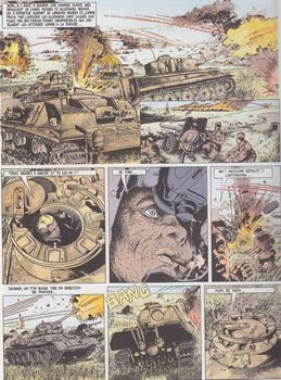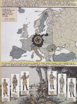 remarques: | pages d'histoire sur la deuxième guerre mondiale avec un scenario et graphisme intéressant à la Schetter, mais cette fois du concret 1/ l'avant-guerre, 1919-1939 le traité de Versailles Mussolini 1922, Hitler 1933 2/ la guerre coloniale, l'aventure italienne en Ethiopie (1935) 3/ corbeau noir et corbeau blanc la guerre civile d'Espagne (1936-1937) 4/ - 35 degrés, l'agression soviétique en Finlande (1940) 5/ le guerre mécanique, le "Blitzkrieg" (1940/1941) 6/ la guerre du pétrole le front méditerranéen (1941/1942) 7/ les portes de Moscou, l'odyssée de Richard Sorge (1941) 8/ le boucher de Prague l'ambitieux Reinhard Heydrich (1942) 9/ l'échiquier de la mer la guerre dans l'Atlantique (1943) 10/ soldats, êtes-vous de plomb? la bataille de Koursk (1943) 11/ journal d'un G.I., la reconquête et la victoire alliées (1945) >> un résumé de la seconde guerre mondiale bien rédigé et bien dessiné |