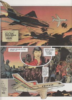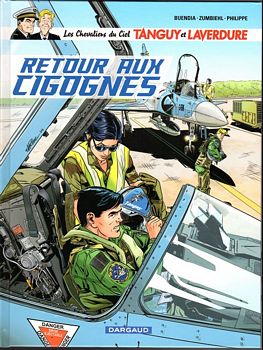 remarques: | 4 ans après le tome précédent, 48 pages, premier et dernier album dessiné par Coutelis, édition Hachette/Novedi, dernier titre l'espion venu du ciel, page de garde: dédicace de Coutelis en hommage à Jijé et à Uderzo finalement la mystérieuse fréquence est interceptée et un plan d'évasion comprenant la destruction de la base secrète est élaboré par Tanguy >> p. 4 une miss Li-Ling, différente de l'album précédent >> p. 5 Tanguy et Laverdure qui ressemble lui beaucoup à Laurel (de Laurel et Hardy) avec un résumé de trois pages suite à l'album précédent de 1984 >> p. 11 des bretelles servant de moyens de communication >> p. 18 la recette du Ricard grâce à leur avion, devenu l'avion présidentiel d'Ojumbé, Tanguy réussit à se poser sur la mystérieuse base secrète, c'est une base ultra-secrète construite par une association secrète dans une région secrète, la station est dotée d'un centre radar électronique d'espionnage avec un canon laser capable de détruire les satellites tournant autour de la terre >> p. 30 Tanguy pose sur la piste son avion tanguant >> p. 31 le colonel Ojumbé qui suit la suite >> p. 38 le directeur de la Shaba & Co: genre docteur Fu Man Chu par ruse et par audace, Tanguy capture Ojumbé, détruit la base en anéantissant les avions-chasseurs, élimine Li-Ling et Fu man Chu, réussit à décoller sous les flammes, parvient encore à récupérer les otages à Kombola y compris Malika la fiancée de Fourreau avec l'urne contenant ses cendres et rejoint la France sans autres problèmes, quel as ce Tanguy! >> dernier album de la série collectionné ici, un scénario vraiment peu élaboré et un graphisme d'un nouveau genre, mais encore acceptable, pas le meilleur de la série et curieusement côté dans le BDM avec Euros 80.- avec ce dernier album et suite à la mort de Charlier, se termine la première partie des aventures de Tanguy et Laverdure, elles seront toutefois reprises 14 ans plus tard en 2002 sous le titre "les nouvelles aventures de Tanguy et Laverdure" (mais en partie sans le portrait des deux chevaliers) sur un scénario de Laidin par les éditions Dargaud avec 12 albums parus: - 2002 prisonniers des serbes (dessin Fernandez) - 2005 opération Opium (dessin Garreta) - 2012 le vol 501 (dessin Fernandez) - 2015 taïaut sur bandits (dessin Lepelletier) - 2017 rencontre de trois types (dessin Fernandez) - 2018 diamants de sable - 2018 le sabre du désert - 2019 retour aux cigognes - 2020 Tanguy versus Laverdure - 2022 frontière obscure - 2023 marée rouge en mer Noire - 2024 trahison pour ces sept derniers albums, scénario Zumbiehl, dessin Philippe + un spécial 60 ans de Tanguy et Laverdure + une édition pirate: missions X, sans date et non vendu et de 2016 à 2017 une trentaine d'albums ont été réédités dans la collection Hachette qui reprend souvent les mêmes couvertures, mais avec deux nouveaux titres: - 2017 menace sur Mirage F1 reprenant sur huit pages des photographies de Mirage F1 - 2017 l'avion qui tuait ses pilotes tous ces derniers albums non collectionnés ici n.b. quelques albums sont également parus dans la collection 16/22 ainsi qu'aux éditions Dargaud/Zephyr (6 albums) soit: - 2016 menace sur Mirage F1 - 2017 l'avion qui tuait ses pilotes - 2019 coups de feu dans les Alpes - 2021 le pilote qui en savait trop - 2023 le mystère du Sabre jaune - 2024 traque au Canada annexes - couverture de l'album - nouveau 4ème plat pour cet album - extrait de page - un intégrale de Tanguy et Laverdure - couverture de l'album 2019 - couverture de l'album 2002 - couverture de l'album 2022 - couverture album 60 ans - couverture album pirate - couverture édition Hachette Information la série BD Tanguy et Laverdure a fait aussi l'objet d'une série télévisée sur ORTF avec Christian Marin (Laverdure) et Jacques Santi (Tanguy) dès 1967 sous le titre "les chevaliers du ciel" avec la chanson du générique interprétée par Johnny Hallyday |