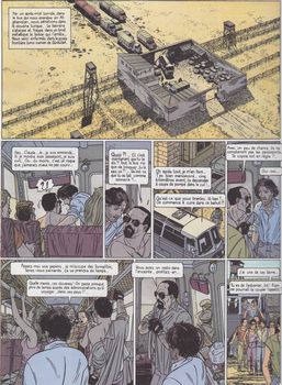 remarques: | Casterman 1988, 1ère édition couleur Kirovsk 1976, deux hommes s'emparent d'un produit spécial dans un centre d'expérience chimique en URSS, entretemps Stéphane et Alice sortent de Turquie par >> p. 9 le poste de douane de Gürbülak puis c'est la douane iranienne >> p. 11 un drôle de bus pas comme les autres 2000 km pour traverser l'Iran jusqu'à la frontière afghane pour rejoindre le rendez-vous de Kolstov durant le trajet, Stéphane s'efforce d'ouvrir la petite boite cachée dans le talon de sa botte et reçoit un gaz peu agréable en pleine gueule alors que les espions et les agents de la sécurité turque sont toujours sur leurs traces >> p. 15 les formalités pour passer la douane afghane enfin arrivée à Hérat où espions et agents les attendent déjà, rencontre avec Yves Meillard, vol des passeports, les espions retrouvent Kolstov (un savant russe) avant les agents turcs et se font expliquer par le trafiquant Sanskri les évènements survenus depuis Istamboul, s'en suit une transaction compliquée dans >> p. 27 le four à pain d'une boulangerie les espions s'enfuient avec Kolstov, mais Stéphane, arrêté par les agents turcs se rappelle les avoir vu dans un laboratoire à Karakulak et retour en Turquie avec les agents turcs pour retrouver Kolstov après avoir récupéré son passeport chez un réceleur afghan, toutefois à ce point Alice quitte Stéphane après avoir délivré Kolstov, abattu les espions et appris qu'en fait le poison avec antidote inventé par Kolstov est inoffensif, Stéphane peut enfin continuer son voyage vers le Pakistan et les Indes >> réédition complètement redessinée en mieux et en couleur avec un scénario également totalement remanié et un peu plus compréhensif, ce qui rend le récit plus logique et plus intéressant malgré un développement toujours assez complexe |