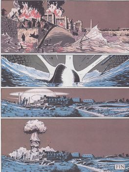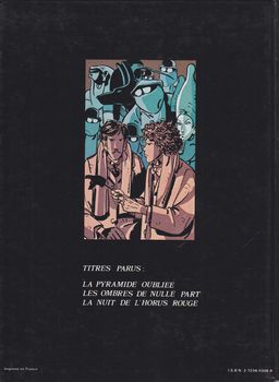 remarques: | suite de l'album "les ombres de nulle part" des cadavres, morts prématurément par crime rituel suite au masque d'Osiris >> voir l'album précédant, sont charriés par les eaux de la Seine la lutte à mort entre les deux sectes égyptiennes des prof. Astrol et Sennett continue, les deux groupes s'éliminant petit à petit jusqu'à la finale: une explosion atomique et ce sera la vengeance d'Horus rouge >> p. 21 les essais de lévitation >> p. 40 la cérémonie d'Horus >> un scénario qui mène nulle part, du fantastique surréaliste à la volée et à la pelle, mais qui se laisse assez bien lire de par un texte et un graphisme assez intéressant dont Tardi aura été le précurseur en 1976 avec Adèle Blanc-Sec, dernier album de la série, une autre série de ce genre sera créée avec le personnage de Nicéphore Vaucanson >> voir ce titre |