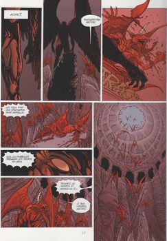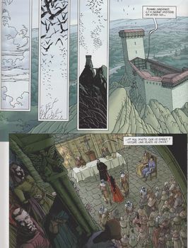 remarques: | la suite du développement du monde des chimères les gens de Payen partent à la recherche du faux Abeau mais celui-ci a été brûlé lors de l'incendie de la cabane de Smérald et Cylinia, seule rescapée, jure de se venger sur le seigneur de Roquebrune qu'elle juge responsable de ces évènements après avoir déterré un parchemin contenant un mystérieux secret entretemps, Adémar seigneur de Hauteterre qui convoite toujours les terres de Roquebrune, envoie son espion Perrin en mission rechercher un parchemin confirmant sa légalité sur Roquebrune >> p. 7 Perrin le félon accourt ventre à terre pour servir le seigneur de Hauteterre Guéraud, fidèle ami de Payen, sort Smérald de sa prison pour qu'elle guérisse Payen toujours atteint de folie, dans le monde des chimères, le vrai Abeau a aussi disparu, le maître des chimères ordonne aux kobolds de le retrouver n.b. les kobolds sont des créatures légendaires du folklore et de la mythologie germanique, le terme est issu de l'allemand kobold, lui-même du moyen haut allemand kobolt, composé des deux éléments: - kobe "petite pièce d'une maison, étable, recoin, réduit" - et du suffixe -old, -olt issu du verbe walten "régner sur, gouverner" ou holt "gracieux, fidèle, serviable" kobold, c’est-à-dire "celui qui règne sur la pièce" dans le folklore germanique, ce sont les kobolds qui causaient les accidents de mines, le kobold germanique a pour équivalent en France, le gobelin. >> p. 17 le monde cruel des chimères Smérald se fait surprendre au chevet de Payen après l'avoir guéri, elle est libérée par Guéraud mais à nouveau pourchassée par Bertaire >> p. 30/31 Smérald est reprise et jugée pour sorcellerie, pièce à conviction: l'homonculus mandragoreus >> p. 37 la sentence de Smérald prononcée par Bertaire, l'inquisiteur de Fondfroide >> p. 41 Perrin n'a pas encore sa jambe de bois bien que Cyliane l'appelle déjà Perrin, jambe de bois entretemps, Cyliane s'allie avec Perrin contre le seigneur de Roquebrune en remettant à Perrin le parchemin secret reçu de sa mère >> p. 47/48 Smérald meurt sur le bûcher alors que le vrai Abeau est ramené chez les chimères par les kobolds >> une suite tout à fait respectable avec un bon graphisme et coloriage |