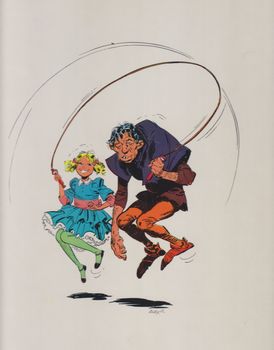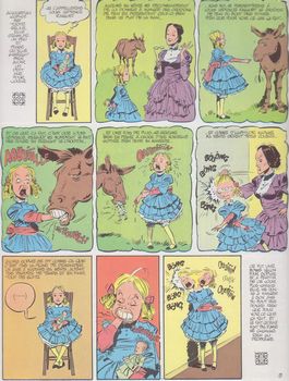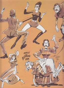 remarques: | dans la série des parodies de films, trois nouveaux épisodes 1) chapeau melon et bottes de cuir petit intermède avec de petites affaires policières sans prétention 2) les malheurs de Sophie (by comtesse de Ségur, née Rostopchine) l'injustice envers Sophie qui trouvera vraiment son bonheur dans les affres de l'enfer (quelle belle leçon de moral) >> p. 26 même Dieu est mis en cause 3) Notre-Dame de Paris (by Hugo) une belle fresque d'amour entre la belle et la bête >> p. 58/59 deux belles planches mais aussi deux planches mystérieuses en fin d'album >> un très bon album surtout pour le dernier épisode de par les superbes illustrations d'Alexis, le texte étant typiquement caricatural par Gotlib avec comme cerise sur le gâteau une magnifique couverture d'album |