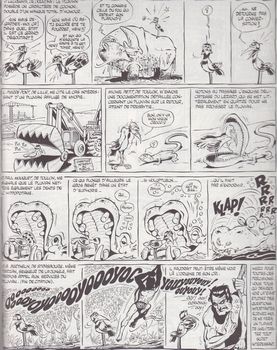 remarques: | album grand format en bichromie, réédition 3ème trimestre 1972 de l'édition originale juillet 1967 des dossiers-gags paraissant dans Pilote "mâtin quel journal" dès 1965 des thèmes farfelus et de toute origine: - les bébés et l'enfance - grands enfants et petits hommes - le journal de la classe (Pilote) - les profs populaires - les corrections des devoirs - les poissons d'avril, le chic - les vacances - les voyages dans le cosmos - le folklore - thèmes techniques: le téléphone, la photographie, le cinéma, la télévision - les thèmes animaliers: le comportement animal, le langage des animaux - leçons sur l'histoire - les héros de la bande dessinée >> un bon graphisme et quelques bons gags, notamment en pages 28/29, 72/73, 78/79 et 80/81, mais il manque encore une certaine touche dont le sommet sera atteint dans les premiers albums Rubrique à Brac Information les Dingodossiers sont des recueils de planches de bande dessinée humoristique, les saynètes sont dessinées par Marcel Gotlib sur des scénarios de René Goscinny, elles sont une sorte de satire de la société de la France des années 60 à travers des histoires généralement en deux planches et sans personnage récurrent elles sont tout d'abord publiées dans le magazine Pilote de 1963 à 1967, la série atteint un total de 169 épisodes lorsqu'elle est arrêtée en 1967, Goscinny ne pouvant plus en assurer le scénario à la suite d'une surcharge de travail, il souhaitait néanmoins que Gotlib crée ses propres histoires en continuant les Dingodossiers, mais le dessinateur, par respect pour le scénariste, renomme la série en Rubrique-à-brac |