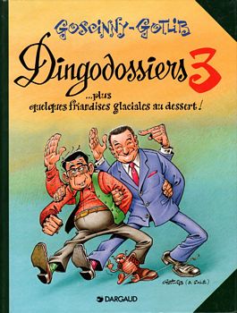 remarques: | album grand format, en quadrichromie 50% couleur et 50% noir&blanc deuxième et dernier album de la série les Dingodossiers avec comme épisodes pincipaux: - les belles histoires de mémé Chaprot - dressez votre chien - les grands héros de l'histoire - les mystères de la vie - les bricoleurs, le magnétophone - au restaurant, les vacances - le folklore, la douane - le jeu du 421, la volonté - les choses de la vie, un oizeau énervant - le cirque, le dompteur - notes sur le printemps, le rusé renard - la rentrée enchantée, - les génériques de films >> à nouveau un bon graphisme avec des scénarios sur la société doublés de quelques bons gags et calembours dont les meilleurs 18/19, 40/41, 68/69 à noter: les rédactions de l'élève Chaprot en p. 25-28, 29-32 et 49-56 annexes - couverture et extraits de l'album - couverture du tome 3 des dingodossiers paru en 1995 avec 11 pages supplémentaires de présentation des auteurs, mais non collectionné ici |