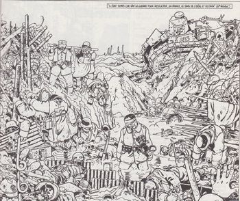 remarques: | les cahiers de la bande dessinée, mai-juin 1985 1) - entretien avec Jacques Tardi by Thierry Groenstein né en 1946, fait partie des plus fortes personnalités parmi les dessinateurs et auteurs de BD, mais critique la production actuelle en 1983 avec 90% des BD qui ne valent pas grand chose (?) il a une prédilection pour l'époque 1900, atmosphère fantasmatique, a recours à la photographie pour plusieurs mises en scène de ses récits, aime beaucoup les chats thèmes principaux: guerre, politique et polar excelle aussi dans ses albums de la première guerre mondiale 2) - 14-18 voyages au bout de la mort by Jacques de Pierpont épisodes sur la grande guerre avec "c'était la guerre des tranchées", "véritable histoire du soldat inconnu" et "trou d'obus" = grand travail de documentation dénonce la boucherie et la stupidité de la guerre, la guerre de 14-18 est aussi mentionnée dans les aventures d'Adèle Blanc-Sec et de Brindavoine 3) - trou de mémoire by Jacques Samson - le mal et la cruauté de la guerre = véritable obsession pour Tardi - commentaires sur la guerre: "des petites gens qui ne se connaissent pas s'entretuent pour des puissants qui dînent ensemble" (noté dans l'album "le secret de la salamandre") - description de l'album "trou d'obus" = jeu d'assemblage en imagerie genre Epinal avec petit théâtre de papier en relief 4/ - tueur de pingouins by Sylvain Bonyer Tardi donne à ses oeuvres un "nouveau réalisme" tout comme d'autres auteurs BD tel que Moebius, Montellier, Schetter, etc (exemple: Iron city dans Brindavoine) à noter: l'apostrophe de Tardi au lecteur, par exemple dans Adèle Blanc-Sec pour établir une relation d'intelligence avec le lecteur ce qui ne réussira pas toujours à Tardi 5/ - les aventures d'Edith Rabatjoie ou le feuilleton désenchanté by Thierry Smolderen - les aventures d'Adèle Blanc-Sec sont une entreprise confuse avec mystification >> p. 24 l'image incantatoire généralement en bas de page (pour obtenir un effet de surprise ou le vertige de la case à venir) - une autre mystification: Edith Rabatjoie, un sosie décalé au visage ingrat, son rôle n'étant pas toujours clair (pour dérouter le lecteur?) 6/ - Adèle retrouvée by Thierry Groenstein discussion sur le dernier album "le noyé à 2 têtes" = le monde du cirque = prolifération de la matière fictionnelle et résurgence obsessionnelle 7/ - 26 leçons sur la patrie by Luc Delisse+Thierry Groenstein expressions populaire tardiennes: - l'alcool (le coup de gnôle) - Babylone (Paris de Pazuzu) - le cafard (être nuisible, dénonciateur) - le drapeau (rouge-vinasse, bleu-de-travail et blanc-camembert) - exécution (guillotine) - flic (poulet) - glace (conservation) - hystérie (psychiâtrie) - soldat inconnu (guerre 14-18) - jupon (Adèle) - kitsch (goût bizarre) - lupanar (bordel) - morgue (but final) - naufragé (noyé) - odeur (pisse, sciure et crottin) - presse (façade) - quai (Nestor Burma) - religion (curaille) - statue (grands hommes) - toit (plafond) - uniforme (sang) - Verdun (gloriole) - Waterloo (même combat) - xénophobie (les rastaquouères) - New York (repaire du crime) - - zoophilie (ptérodactyle) 8/ - le chaînon manquant by Bruno Lecigne évolution de la représentation fantasmée à une veine charnière via la schizophrénie et pas toujours cohésif ou compréhensif chez Tardi malgré les métaphores et autres références (castration, paternité, symboles, etc) concalénation = enchaînement des idées entre elles 9/ - Paris-New York, parcours fléché by Claude Ecken le décor urbain est prépondérant dans les oeuvres de Tardi et son impact sur les personnages (influence dépressive de l'environnement) 10/ - cinq images pour rêver (cases mémorables) by Thierry Groenstein - Bonnet l'éditeur fou (soldat inconnu) - Arthur Même et Fusie - Salaisons (Ici Même) - le dernier train (sérigraphie) - le clocher (c'était la guerre des tranchées) Bibliographie de Tardi adieu Brindavoine, démon des glaces, histoire du soldat inconnu, rumeurs sur le Rouergue, Adèle Blanc-Sec, Polonius, Griffu, Ici Même, Mouh-Mouh, Nestor Burma, trou d'obus, tueur de cafards, c'était la guerre des tranchées, le cri du peuple >> un cahier-étude sur Tardi assez bien recherché mais parfois très psychanalisé Tardi le dessinateur non-conformiste, antimilitariste, anticlérique, mystérieux et névrosé à la ligne noire forte 11) - discussions sur la BD érotique le porno et l'érotisme dans la BD = d'abord une affaire de gros-sous, bien sûr c'est regrettable, mais tous les auteurs de BD sont opposés à la censure et il y a aussi des thèmes controversés tel que l'antiféminisme, le racisme, etc 12/ - correspondance anglaise by Paul Gravett Judge Dredd dans 2000 AD ainsi que Warrior, Eagle comics, Comic rock, Duck Soup et bien sûr l'éternel Mad Magazine 13/ - la BD allemande by Paul Derouet dont Schultheiss et Scheuer 14/ - images pieuses dans la BD religieuse by Arnaud de la Croix n.b. en règle générale, l'Eglise n'aime pas du tout que Jésus soit mis au rang de héros de BD, principalement d'inspiration biblique, problème de la représentation de Dieu, quelques oeuvres parmi d'autres: - albums de la Bonne Nouvelle (Pilamm, Casterman) - découverte de la Bible (Larousse) - Bernadette et Don Bosco by Jijé - François d'Assise by Battaglia 15/ - quelle critique pour la BD ? by l'équipe du CBD discussions sur les critiques de BD dans les CBD >> p. 52/53 photo des principaux intéressés dont le président Thierry Groenstein la critique BD n'existe que depuis 20 ans, la bonne BD doit toucher le lecteur au plan émotionnel et il faut de la diversité dans les critiques, mais généralement les critiques sont mal perçues par les auteurs de BD 16/ - les case mémorables (Tintin) 1/ l'araignée dans l'objectif (étoile mystérieuse) 2/ la salle de marine (trésor de Rackham) 17/ - Daniel Goossens by Thierry Groenstein né en 1954, participe aux périodiques 