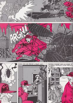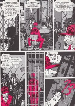 remarques: | Brooklyn, New York, 1983 Eisenhower (enfant adopté par un G.I. à Berlin à la fin de la guerre), employé de la BIEC (Blitz insect exterminating company) découvre par hasard les ramifications d'une mystérieuse organisation criminelle au 13ème étage d'un immeuble de Wall Street, mais à New York, les 13èmes étages n'existent pas >> p. 9 le camion rouge d'Eisenhower Eisenhower se trouve alors malgré lui mêlé à une succession d'évènements (mystérieux et plutôt imcompréhensibles pour le lecteur) mais qui vont changer la vie et la destinée d'Eisenhower et de son entourage: - Luis le porto-ricain, son pote Herminio, la soeur de Luis et d'autres personnages tel que le général Patton et des soldats nazis qui apparaissent tout le long du récit >> p. 30,31 et 32 l'extermination des cafards (= nazis) par Blitz Eisenhower Superman deux récits sans images terminent cet album a) Necromobile by Benjamin Legrand necromobile = pièce qui permet de déplacer les cadavres, récit d'une journée normale au Bellevue Hospital à New York, le journaliste Malcolm hospitalisé recueille des idées pour un prochain roman, réflexion sur une prochaine civilisation des insectes et l'existence d'une organisation secrète genre mafia au-dessus des Etats, les multinationales étant le vrai pouvoir b) récit de Tardi sur les petits cafards de notre culture, réflexion explicative sans portée réelle sur l'album l'exterminateur des cafards et à nouveau critique des médias, etc >> un album à donner vraiment le cafard, à la sauce tomate Tardi (fixation sur le rouge) mais avec quelques bons portraits de New York, par contre le scénario genre psycho-thriller est non seulement absurde et tiré par les cheveux mais aussi sans grand intérêt, avec les sempiternelles critiques de la société, des médias, du gouvernement et un peu de tout n.b. peut'être aussi une petite référence à l'assassinat de Kennedy? Information tueur de cafards est une bande dessinée française de Jacques Tardi et Benjamin Legrand, publiée en 1984 chez l'éditeur Casterman l'album se déroule à New York, à l'époque contemporaine de sa sortie (années 1980), et plus précisément dans ses bas-fonds, entre Brooklyn et le Bronx, Walter est exterminateur de cafards pour la société Blitz, son uniforme et sa casquette rouges, avec le logo de son employeur, sont d'ailleurs la seule touche de couleur dans cet album en noir et blanc, lors d'une intervention dans un immeuble, il surprend une conversation secrète, cela l'entraîne, malgré lui, dans une sombre affaire de règlement de comptes entre gangsters anti-héros absolu, Walter assiste impuissant à des événements sur lesquels il n'a aucune prise, finalement, pratiquement tout le monde sera tué, sauf Walter et les cafards |