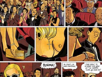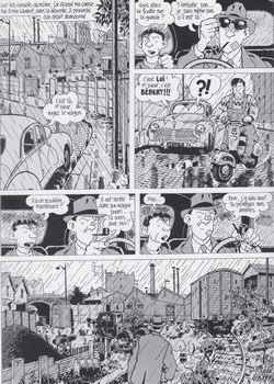 remarques: | Paris 1957 gare de Lyon où Nestor Burma attend sa secrétaire revenant de vacances au Midi qui lui fait faux bond >> p. 8/9 visite à la fête foraine pour se passer le temps tentative de meurtre sur Burma durant le circuit du Grand Huit alors qu'il suit une jeune femme >> p. 14 les Peugeot d'époque dont la 203 de Burma >> p. 15 la plaque Fiat Agence Lux >> p. 22 la rue Malet (pas Leo mais Albert) >> p. 25 voyou, si tu continues comme ça, tu finiras ministre (dixit Nestor Burma) lors de son enquête avec la môme Simone Blanchet, Burma se fait tabasser par la bande de morfleurs de Bébert n.b. morfler = encaisser un coup dur par chance Burma est débarrassé de la bande grâce à l'intervention du géant forain Fernand >> p. 35 visite chez Gigi l'invalide, victime elle aussi d'une agression dans le Grand Huit puis Burma se retrouve mêlé à un vol et trafic d'or, il recherche Bébert pour lui soutirer des informations à ce sujet, mais n'en tire rien sauf à nouveau de la bagarre musclée durant laquelle >> p. 43 Burma se fait piquer sa bagnole par une jeune inconnue, trouvée chez Bébert, une bourge friquée mais pas bêcheuse selon Bébert enfin grâce à des clés trouvés sur son agresseur du Grand Huit, Burma pénètre dans un pavillon de banlieu où il découvre le cadavre de la Simone Blanchet, tuée bêtement par son amant Montolieu, un commerçant en vin, mêlé au trafic d'or qui a caché l'or dans un wagon-citerne de vin et qui a assassiné son associé pour pouvoir prendre la direction entière de la société vinicole à la place de sa belle-fille, fille de l'associé qui voulait faire valoir ses droits de succession Burma surprendra au pavillon un peu plus tard Montolieu revenu sur les lieux du crime s'en suit une fusillade à laquelle est mêlée la veuve Parmentier, propriétaire du pavillon, une bonne vieille bigarrée qui siphone du gros rouge et fume du bon cigare; les malfrats sont arrêtés, l'or est retrouvé, Burma reçoit une prime et peut enfin réceptionner sa secrétaire à la gare Perrache de Lyon >> une enquête qui englobe de nombreux négociants en vin, mais qui ne casse rien, de plus le texte est parsemé d'argot parisien, pas toujours facile à comprendre et pas particulièrement recherché avec un graphisme quelque peu relâché par rapport aux albums précédents n.b. il y aura encore un album Nestor Burma dessinés par Tardi: - tome 5 m'as-tu vu en cadavre? (2000) puis 8 autres albums HS dessinés par Moynot ou Barral: - tome 6, la nuit de St-Germain-des-Prés (2005) - tome 7, le soleil naît derrière le Louvre (2007) - tome 8, l'envahissant cadavre de la plaine Monceau (2009) - tome 9, boulevard, ossements par Barral (2013) - tome 10, micmac moche aux Boul'Mich par Barral (2015) - tome 11, Nestor Burma contre C.Q.F.D. (2016) - tome 12, l'homme au sang bleu (2017) - tome 13, corrida aux Champs-Elysées (2019) par Barral - tome 14 les rats de Montsouris (2020) ainsi que quatre éditions spéciales, toutes dessinées par Tardi (en partie N&B et/ou couleur): - 1988 rendez-vous 120 rue de la Gare, autopsie d'une adaptation - 1996 Nestor se met à table - 2001 enquêtes à Paname - 2003 Nestor Burma, 60 ans d'enquête mais non collectionnés ici annexes - couvertures 1er et 4ème plat - extraits d'album - extrait de l'album tome 12 Information où nous retrouvons celui qui met le mystère KO, le détective de choc Nestor Burma né en 1943 sous la plume de Léo Malet, fondateur de l'agence Fiat Lux, Nestor Burma arpente Paris dans tous les sens pour sauver du désarroi de charmantes jeunes filles aux intentions pas toujours louables, il a la réputation de travailler en solo, garde le silence sur ses clients, n'est pas très aimé de la police et prend souvent des coups sur le coquillard l'aventure commence gare de Lyon, lassé d'attendre Hélène, sa fidèle secrétaire, Burma décide de suivre une belle brune qui l'entraîne à la foire du Trône, où, toujours suivant la belle brune, il monte derrière elle dans le grand huit, où un inconnu essaie de le balancer dans le vide, mais c'est l'agresseur qui tombe dans le vide et Nestor Burma qui tombe dans les pommes, où les flics qui s'en mêlent soupçonnent le détective de faire son travail de détective en filant le mort avant qu'il soit mort où Nestor Burma décide de s'occuper de l'affaire, savoir pourquoi on a voulu le tuer et où il découvre qu'une certaine Geneviève Lissert a, elle aussi, été poussée du grand huit et s'en est remise aigrie et paralysée après "brouillard au pont de Tolbiac" et "120 rue de la Gare", Tardi poursuit l'adaptation des nouveaux mystères de Paris avec sa sensibilité, sa vision du Paris des années 50, et nous entraîne dans un tourbillon infernal, tournez, manèges |