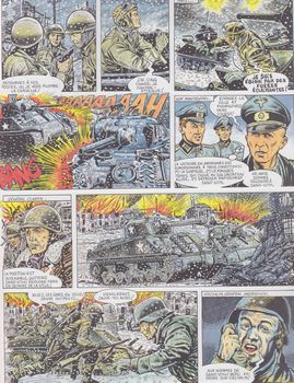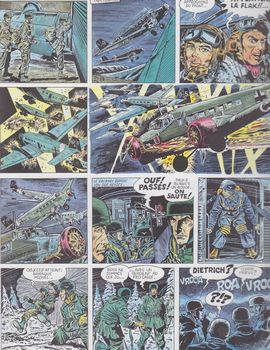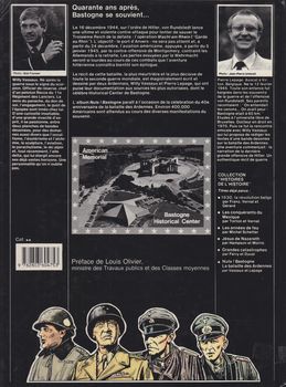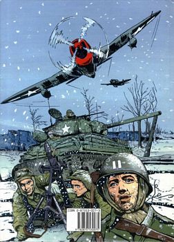 remarques: | assez bon compte-rendu de la bataille des Ardennes, appelé aussi battle of bulge scénario: Pierre Lepage, dessin: Willy Vassaux l'opération "Wacht am Rhein" de Hitler (250'000 hommes, 2000 canons et 1000 chars, une dernière offensive allemande sans grand espoir les divisions SS de Peiper déguisées en américains, les combats de Saint-Vith, Bastogne, Malmédy et Dinant, surtout le siège de Bastogne défendu par Anthony McAuliffe dirigeant la 101ème aéroportée et qui répondit à Manteuffel le fameux mot de nuts qui veut dire en quelque sorte "merde" >> un récit de 64 pages, quelque peu désordonné tout comme l'offensive des Ardennes, mais assez bon graphisme annexes - couverture Ier et 4ème plat de l'album - extraits de page - couverture Ier et 4me plat du tome 2 Information le scénariste = Pierre Lepage, il y eut plusieurs auteurs BD signant Lepage dont le plus connu Emmanuel Lepage né en 1966 >> voir la terre sans mal, série histoires fantastiques le dessinateur Willy Vassaux (né en 1945) qui a aussi illustré les colonnes de Salomon (voir ce titre) il existe un deuxième album par Vassaux avec Lepage sur l'offensive des Ardennes, tome 2 la riposte en 1991 (album non collectionné ici) |