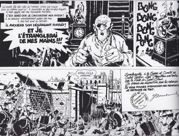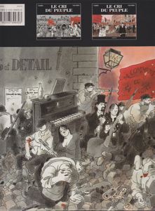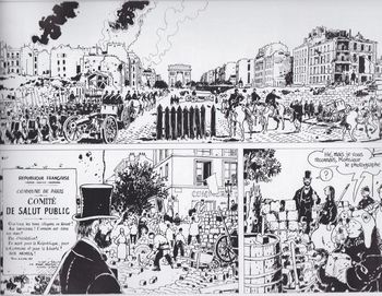 remarques: | album cartonné dans coffret, N&B, 80 pages samedi 20.5.1871 à Paris "la commune ou la mort", on fusille des curés, il y a représaille de part et d'autre remis sur pied, Grondin patrouille dans Paris Mac Mahon, commandant en chef des versaillais, prépare ses troupes, l'assaut sur Paris est imminent >> p. 13 critique de Dieu qu'il faut laisser éternuer dans sa poussière de tabernacle l'histoire de l'ancien forçat Bassicoussé, alias Grondin, évadé du bagne de Cayenn et comment il devint le tuteur de Jeanne Grondin, à ce moment, c'est un peu Valjean et Javert réunis Grondin et son collègue Barthélémy se séparent pour mieux retrouver la trace de Tarpagnan, entretemps la bataille fait rage dans Paris >> p. 31/32 une curieuse horloge la Commune résiste, mais son armée mal commandée et peu organisée cède du terrain aux versaillais, les communards se retranchent alors derrière des barricades de rue >> p. 37 les Champs-Elysées saccagées la Pucci qui a endossé l'uniforme des communards rencontre brièvement Tarpagnan mais le quitte aussitôt, Tarpagnan cherche alors à rejoindre le commandant Dombrowski, il atteint ainsi la barricade des Invalide, il y retrouve Jules Vallès, rédacteur du journal "le cri du peuple" qui ne se fait plus d'illusion sur l'issue de la bataille >> p. 56 où l'on mentionne un Tardy avec un y et un Tardi avec un i >> p. 61 canons contre barricade mais de part et d'autre, on ne fait plus de prisonniers sur la barricade, Tarpagnan est à nouveau sauvé par Marbuche qui l'emmène à l'écart de la bataille tandis que Grondin recherche toujours Tarpagnan pour l'exécuter; en attendant, c'est Fil-de-Fer qui passe de vie à trépas >> p. 73 exécution de Tardy, collègue de Vallès, par les versaillais et la tuerie continue (hommes, femmes, enfants), en se retirant les communards mettent le feu à Paris, les Tuileries flambent >> c'est le début de la fin pour les communards, on appellera cette période "la semaine sanglante" dans cet album, le graphisme l'emporte sur le scénario, mais les pérégrinations de Grondin et de Tarpagnan à travers les barricades de Paris ravagé nous conduisent à travers un paysage de mort et de désolation Information Jaroslaw Viktorovitch Dombrowski est un officier polonais (1836-1871), officier dans l'armée russe, il prépare l'insurrection polonaise de 1863, est condamné à la déportation, s'évade et gagne la France où il se met au service de la Commune de Paris; doté du grade de général, il meurt sur les barricades lors de l'assaut des Versaillais biographie il se met à disposition de la République de 1870 proclamée le 4 septembre en pleine débâcle, mais ne réussit, comme beaucoup d'internationalistes, qu'à se faire arrêter, deux fois de suite, le 18 mars, il se rallie à la Commune et reçoit le 6 avril le commandement de la 11ème légion de la Garde nationale à la tête de laquelle, dès le 9 avril, il mène avec succès la défense de Neuilly, attaqué après la défaite de Courbevoie, il y réussit les contre-attaques des 11 et 12 avril, mais n'est pas suivi dans ses préconisations (avertissements), il recommande en effet l'emploi tactique de l'artillerie et la constitution de commandos volants au lieu du bombardement préparatoire et de la manœuvre de fantassins, toutefois, il n'est pas entendu, ni du ministre de la Guerre Cluseret, pourtant très expérimenté mais opposé à Delescluze, ni des autres armes, pratiquement autogérées, Thiers, qui craint sa valeur, lui adresse discrètement un de ces nombreux émissaires qui parcourent secrètement Paris, Vaysset, avec une offre d'un million et demi de francs, mais le général préfère dénoncer la tentative de subornation et faire arrêter le messager qui sera fusillé, le 19 avril, il est blessé mais reprend le 29 le commandement élargi à toute la division de la rive droite de la Seine qui mène les combats dans la proche banlieue en feu et soutient le siège d'un Paris affamé derrière ses fortifications Dombrowski et Walery Wroblewski étant les seuls officiers supérieurs à avoir reçu une formation militaire, Louis Rossel, qui remplace depuis le 1er mai Cluseret, nomme le 5 mai Dombrowski commandant en chef de l'armée de la Commune de Paris, en réalité, celui-ci commande une armée de quarante mille déserteurs hormis quelques desesperados, le 14 mai, il reçoit le soutien de Delescluze, nommé le 11 délégué civil à la guerre, par un décret ordonnant la mise en place de barricades en pierre, le 22 mai, alors que la Semaine sanglante a commencé et que les Versaillais sont déjà à l'Opéra et à l'Arc de Triomphe, il apparaît, alors qu'on le croit mort, sur son cheval noir conduisant à travers la rue de Rivoli un bataillon qui chante le Chant du départ et fonce au pas de course à l'ennemi depuis l'hôtel de ville, ce bataillon comprend des femmes dont l'une porte un bébé dans ses bras, le lendemain, 23 mai 1871, en fin d'après midi, au pied de la barricade de la rue Myrha défendue par son état major et une brigade cosmopolite, Dombrowski reçoit une balle alors qu'il se préparait à conduire une contre-offensive et meurt quelques heures plus tard à l'hôtel de ville où il a été transporté inconscient, il allait avoir trente-cinq ans et aura été général quarante-sept jours dont douze en première ligne son nom fut donné a une unité polonaise des brigades internationales durant la guerre d'Espagne |