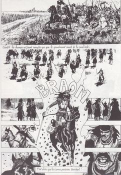 remarques: | album titré tome 1 mais qui restera sans suite, N&B, 93 pages, n.b. l'album ne traite pas de la guerre de 1870 mais de ses conséquences sur la Commune de Paris et celles-ci sont abordées par l'entremise de deux personnages: un prolétaire et un monarchiste >> p. 3 le journal hebdomadaire "le monde illustré" du 26.11.1870 la guerre de 1870 vient de commençer >> p. 15 6.8.1870 la charge des cuirassiers à Reichshoffen pour protéger la retraite de Mac Mahon en occupant des batteries allemandes durant vingt minutes, les pertes des cuirassiers seront terribles et presque inutiles à Paris le révolutionnaire Blanqui profite de la défaite de Napoleon III pour organiser une insurrection 4.9.1870 le peuple parisien proclame la déchéance des Buonaparte, Gambetta proclame la république avec un gouvernement dit de "défense nationale" 19.9. Mac mahon et Bazaine battus, les prussiens avancent sur Paris et y mettent le siège, Trochu est élu gouverneur de Paris, formation de la Garde Nationale (280'000 hommes) recrutée surtout parmi le peuple pour défendre Paris Gambetta quitte Paris assiégée par ballon gonflable, le 31.10. les rouges veulent renverser Trochu et prendre le pouvoir mais leur tentative échoue, une offensive par l'armée de l'ouest pour dégager Paris échoue également et la famine commence à se faire sentir dans Paris assiégée janvier 1871, le délégué ouvrier Varlin exhorte à la révolution sociale tandis que Paris subit le bombardement des prussiens Trochu décide une sortie offensive contre les prussiens, c'est à nouveau un échec, Trochu démissionne, le gouvernement veut entamer des pourparlers de paix avec Bismarck mais le peuple de Paris ne veut pas d'une capitulation le gouvernement est discrédité, le député Favre à Versailles négocie néanmoins avec Bismarck qui donne ses conditions: - annexion de l'Alsace-Lorraine, - payement de 5 milliards en franc-or, - les soldats de ligne français doivent être démobilisés, les prussiens occuperont les forts autour de Paris, mais pas la ville de Paris qui restera sous le contrôle de la Garde Nationale qui ne sera pas désarmée, ce sera l'erreur acceptée par Favre contre l'avis de Bismarck 28.1.1871 c'est le cessez-feu, Gambetta n'est pas d'accord, des élections sont prévues pour le 8.2.1871, l'armée de Bourbaki qui a été oubliée lors des négotiations se réfugie en Suisse après les élections, la nouvelle assemblée se compose de 400 royalistes, 200 républicains et 30 bonapartistes Adolphe Thiers, le petit homme, est élu chef du gouvernement de la IIIème république française le 17.2.1871 les parisiens, la plupart sans travail, s'opposent au gouvernement Thiers, la Garde Nationale s'organise de manière autonome le 27.2.1871 la Garde Nationale de Paris met la main sur les canons que les parisiens avaient en partie payé par souscription et la Commune éclate le 18 mars 1871 >> p. 94/95 liste des personnages historiques de l'époque >> p. 96 chronologie des évènements >> un résumé raconté succinctement, mais de façon plutôt intéressante avec un graphisme toutefois sans prétention n.b. la série mentionne le tome 1 = l'année terrible mais il n'y aura pas de tome 2 |