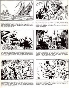 remarques: | petit cahier broché no 1127, originale et rare, N&B, 48 pages avant-propos par Jean-Claude Faur, conservateur de la bibliothèque municipale de Marseille le présent album est totalement inédit et historique, il n'a pas été réédité et produit à 2500 exemplaires est devenu rare, il permet de goûter davantage l'oeuvre du père de Corto Maltese, rassemblant des récits publiés entre 1948 et 1968, il montre en 20 ans toute l'évolution graphique de Pratt qui a atteint son apogée dans l'unique chatoiement du noir et blanc, le scénario a été écrit par Faustinelli qui signe Davide, Oesterfeld et Milani, seul le scénario du dernier épisode est de Hugo Pratt enfin on notera la diversité des genres ici representés avec la BD policière, la BD réaliste de guerre, la BD exotique et la BD d'aventures, ce sera un peu une synthèse pour les prochaines aventures de Corto Maltese les épisodes: - l'As de Pique inspiré de Milton Caniff et du fantôme du Bengale fut une revue publiée en Italie de 1946 à 1949, 18 récits parurent dont "l'avventura à Venezia" - Simbad le marin (oeuvre de commande tout comme "l'odyssée" et "l'île au trésor") ont paru en 1963 dans le Corriere dei Piccoli - un lieutenant allemand s'inscrit dans la série des "Ernie Pike", entreprise dès 1957 et publiée par Jacques Glénat - Luck Star O'Hara fut publié en 1968 dans le no 14 de sergent Kirk, ce récit voit l'avènement de Pratt comme scénariste à part entière, mais cette épisode restera isolé, car Pratt vient de commencer sa série Corto Maltese avec "la ballade de la mer salée" et s'attachera dès lors exclusivement à Corto Maltese 1/ l'asso di picche "avventura à Venezia" aventures à Venise avec le trio Gary, Wang et Deanna appelé par l'asso di picche (genre spectre) pour lutter contre une organisation criminelle qui pourchasse un agent secret dans la cité de Venise 2/ Simbad le marin et ses voyages extraordinaires durant lesquels il rencontrera tour à tour: l'oiseau-roc, la licorne, le géant aux yeux rouges, un serpent gigantesque, des cannibales, une princesse exotique avec qui il doit partager la tombe si elle meurt, des monstres marins, des oiseaux humains et finalement retour à Bagdad 3/ Ernie Pike: un lieutenant allemand (le kaleu) qui se sacrifiera pour la naufragée Ann Lund, la W.A.C. aux yeux tristes, lors du torpillage d'un navire anglais n.b. W.A.C = Woman's Army Corps 4/ Luck Star O'Hara = épisode policier avec la clique irlandaise des O'Donovan, O'Sullivan, O'Maley, O'Connor et bien sûr O'Hara qui résoudra une affaire d'escroquerie à l'assurance >> des aventures amusantes, mais pas exceptionnelles, un album un peu pot-pourri sur les oeuvres de Hugo Pratt, mais un album précurseur plutot rare |