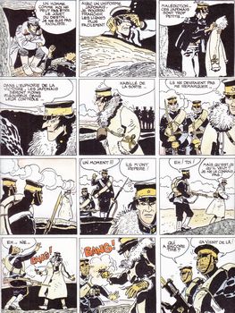 remarques: | album couleur, 44 pages Mandchourie, 1904 durant la guerre russo-japonaise prologue les origines de la guerre russo-japonaise, conflit pour la Mandchourie et Port-Arthur - rencontre avec Raspoutine, le sibérien et - Jack London, l'américain - le capitaine japonais Suto - le code d'honneur du Bushido - le lieutenant Sakai, spécialiste des arts martiaux et membre de la société secrète "Ninja" révolte de Raspoutine dans le détachement sibérien, Jack London comme arrogant américain se fait provoquer en duel par le lieutenant Sakai, London n'a aucune chance de s'en sortir façe à un pareil adversaire, mais Raspoutine vient à son aide en supprimant Sakai à coup de revolver >> p. 25 Jack London peut être méchant avec les méchants >> p. 30 le pardon du lieutenant Sakai, mais le duel subsiste >> p. 35 la Triade vient en aide à London pour éviter le duel, mais entretemps Raspoutine s'est chargé de Sakai et finalement Raspoutine et Corto Maltese s'embarquent pour l'Afrique à la recherche des mines d'or de Salomon en Ethiopie >> un très bon album tant pour le scénario, mais surtout pour le graphisme, les débuts de Corto Maltese, d'abord en Mandchourie, puis au Brésil et par la suite en Afrique (Ethiopie et les scorpions du désert) n.b. curieusement, cet album (1983) n'est pas mentionné dans la bedetheque qui mentionne uniquement l'édition 2015 |