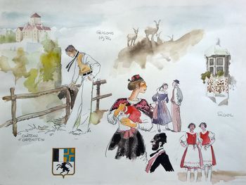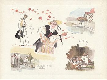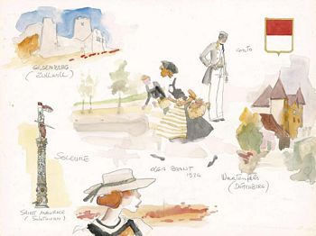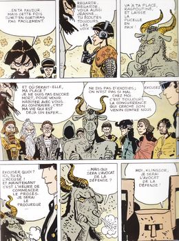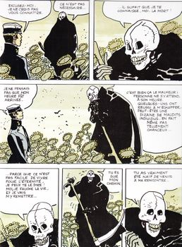 remarques: | album cartonné couleur avec jaquette de 94 pages Corto Maltese avec le prof. Steiner visite la Suisse en 1924, notamment à Sion et dans le Tessin prologue: description des cantons suisses, 26x la Suisse, carte de la Suisse - Uri pont du diable, taureau avec anneau rouge - Unterwald Nidwald et Obwald (la double clé comme blason) - Schwyz premiers révoltés, avec la croix du Christ à l'angle de la bannière rouge sang qui deviendra le drapeau suisse, croix blanche sur fond rouge - Lucerne 1332, première alliance entre ville et campagne - Zuerich 1351, centre commercial - Glaris avec St-Fridolin, l'évangéliste, dernier procès de sorcellerie, pays d'immigrants dont New Glaris aux USA - Berne l'ours de Berne comme blason provenant de "Baer", ours tué par le duc Berthold V de Zähringen - Fribourg la forteresse libre en 1157, îlot catholique parmi les cantons réformés - Zoug état tampon entre Zuerich et Schwyz - Soleure dont l'origine remonte aux temps bibliques - Bâle-Ville capitale européenne de l'humanisme - Bâle-Campagne séparation avec Bâle-Ville en 1833 - Schaffhouse nom provenant de Schiff (bateau sur le Rhin) - Appenzell nom provenant d'Abbatis cella = un domaine abbatial avec les Rhodes Intérieures (catholiques) et Extérieures (réformés), un ours comme symbole - St-Gall moine irlandais avec l'emblème faisceau des licteurs romains, canton formé lors de l'Etat de Mediation en 1803 - Grisons château d'eau de l'Europe, le plus grand canton - Thurgovie avec les deux lions du comte de Kiburg comme blason, le jardin de la Suisse, le canton semble béni des dieux - Argovie berceau de la maison autrichienne des Habsbourg, colonies romaines - Tessin balcon des alpes résultant de l'ambition suisse vers l'Italie - Vaud sa devise: liberté et patrie, langue, culture et histoire particulière - Valais les cicatrices de l'histoire dans la vallée du Rhône - Neuchâtel le français le plus élégant de Suisse, civilisation lacustre - Genève ville internationale de paix, marquée des réformateurs - Jura le dernier-né qui était sous l'autorité du prince-évêque de Bâle dont la crosse se retrouve sur le blason jurassien Corto et Steiner en visite au Tessin chez l'écrivain Hermann Hesse >> p. 42 la robe couleur rose de Thuringe offerte par Corto à Erika où il est en pension le rêve de Corto avec le chevalier Klingsor, adversaire de Perceval, la mort, la danse macabre, le diable, le jugement infernal de Corto pour avoir cueilli la rose alchimique par les juges: Caïn, Judas, Balal, le mage Merlin, Eve, Jeanne d'Arc (la télégraphiste de dieu), le pape Clément V, Gilles de Rais, Dick Turpim et Raspoutine, tous des personnages plus ou moins méchants ou mystérieux >> p. 47 la mort Thanatos >> p. 69 l'épreuve de la danse macabre Corto n'est pas jugé coupable et reçoit l'immortalité en buvant l'eau de la source d'éternelle jeunesse puis Corto se réveille et continue son voyage avec Steiner vers Sion n.b. le calice du Saint-Graal qui serait à Sinodon in Waleis (Sion en Valais) avec ses deux châteaux >> un bon graphisme, mais un récit agnostique, mystique, onirique, artistique, mais pas du tout helvétique malgré une introduction intéressante sur les cantons suisses avec surtout de superbes aquarelles Information les cinq aquarelles présentées en annexe sont tirées du portefeuille "et in Helvetia Corto" par Hogo Pratt Berne, Jura, Bâle Campagne, Soleure et Grisons ce portefeuille signé a une valeur de Euros 1600.- pour plus de détail, voir dossier 462PQ sous Pratt (étude, auteurs de BD) |