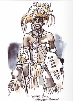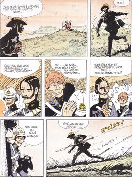 remarques: | album cartonné couleur avec jaquette, 100 pages prologue: documentaire sur le peuple zoulou et sur la guerre avec les zoulous (= les impis), guerre anglo-zoulou (1879-1881) et anglo-boer (1899-1902), guerres déclanchées par la découverte d'or sur ces territoires, la guerre contre les zoulous commence par une défaite anglaise à Isandnlwana et la mort dans une embuscade du prince Eugène-Louis Bonaparte (Napoléon IV) en 1879 le livre raconte l'histoire de Catone Milton surnommé Cato Zoulou, avec une gueule de canard, engagé dans les Buffalo Border Guards, personnage qui aurait bien existé 1/ la fin d'un prince en mission pour effectuer des relevés topographiques, le prince Eugène est surpris par les zoulous et en voulant s'enfuir, par malchance la sangle de sa selle se romp, son cheval s'échappe et le prince est abattu par les guerriers zoulous le 3.6.1879 l'escorte du prince dont faisait partie Cato Zoulou croyant que le prince a pu s'échapper fait retraite, mais plus tard ces survivants seront condamnés à la forteresse pour ne pas avoir secouru le prince Eugène, toutefois Cato Zoulou réussira à s'évader et lors de sa fuite, il viendra à la rescousse d'une famille boer assiégée dans leur ferme par les zoulous, tout le monde périra, mais Cato Zoulou réussira à sauver Marie, une femme boer, ils prendront la fuite et Cato fera croire qu'il est mort dans le combat 2/ la patrouille de la mort Cato et Marie trouveront refuge dans un convoi de boers qui seront de nouveau attaqués par les zoulous, cette fois Marie et Cato n'échapperont à la mort que grâce à l'intervention de Mamba, la sorcière zoulou, qui devine le destin de Cato Zoulou Cato et Marie décideront alors de rejoindre le Zimbabwe pour commencer une nouvelle vie >> p. 72 description du Zimbabwe d'alors >> p. 81 les chiens rouges de la grande reine = les anglais >> un album assez intéressant, le premier épisode étant de loin le meilleur, le deuxième épisode parlant surtout beaucoup de merde avec un graphisme à la Pratt, mais un peu plus spécial que d'habitude |