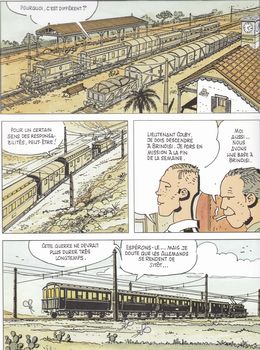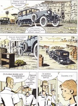 remarques: | album originale couleur avec jaquette, 96 pages prologues: a) - à l'ami que je n'ai pas connu by P. Schoendoerffer récit sur Hugo Pratt qui a été frappé lors de sa naissance par deux fées: l'une pour le don de romancier, l'autre pour le don de dessinateur, Pratt a toujours admiré l'empire britannique (Corto Maltese, père anglais de Cornouailles, la royal navy, l'armée britannique et même Koïnsky, un polonais qui sert sous l'Union Jack) b) les commandos, Morgan et autres souvenirs by Lele Vianello l'histoire du SBS (special boat squadron), une ramification du SAS (special air service) tout comme le LDRG (long range desert group), le SBS fut créé pour des opérations de reconnaissance et de sabotage le long des côtes méditerranéennes, tel l'opération "Albumen" sur une base aérienne en Grèce et un raid sur Venise en 1944 >> p. 11 les canoes utilisés par le SBS >> p. 15 description des vedettes lance-torpilles employés par le SBS Morgan septembre 1943 en Italie, un torpedo-boat commandé par le capitaine Morgan recueille une naufragée italienne: Valeria Bastico qui deviendra l'amie de Morgan >> p. 32/33 l'attaque des Messerschmit sur le train italien mission chez les partisans de Tito, Morgan pense qu'il travaille plus pour la royal mail que pour la royal Navy, nouvelle mission au port de Termoli où Morgan fait connaissance avec le lieutenant Eveline Cunningham, fille de l'amiral Cunningham >> p. 66 le raid par aérostat mai 44, Morgan devient commandant de la vedette "Sbragador" et reçoit une mission à Venise pour éliminer un agent ennemi >> p. 87 le seul moyen de couler un cadavre: lui enlever les intestins dont les boyaux qui par la suite se gonflent et ramènent le corps à la surface, même si le corps est lesté de pierres la mission à Venise est un succès, l'agent ennemi se révèle être toutefois Valeria Bastico et par la même occasion 13 motos BMW allemandes seront détruites, retour à Brindisi pour le commandant Morgan >> un récit bien raconté, bien étudié, bien documenté et assez bien dessiné n.b. c'est parait-il le dernier album produit par Hugo Pratt annexes - couverture de l'album avec extraits - couverture de l'album 1999 blanc&noir Information album posthume, la dernière création d'Hugo Pratt renoue curieusement avec tous les ingrédients qui ont composé son style particulier: action guerrière, ironie, romantisme, sens de l'honneur (et de l'absurde) et dialogues aigres-doux dominés par les sous-entendus, peut-être pas un chef d'oeuvre, mais un bel au revoir de l'artiste du Pratt pur sucre que l'histoire de ce commandant de la Royal Navy sur les côtes adriatiques lors de la Seconde Guerre Mondiale, des saynètes, qui paraîtront décousues à certains, mais qui bout à bout dépeignent bien l'absurdité de la guerre, le courage qu'il faut et la chance qui est aussi nécessaire, pas le grand oeuvre de Pratt, d'accord, mais un album aussi attachant que les aventures de ce cousin (lointain) de Corto (sans le même charisme toutefois) |