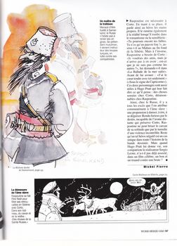 remarques: | 1/ la planète ensorcelée avec Hugo Pratt, la bande dessinée devient une forme d'art en créant Corto Maltese, un grand voyageur, un peu le double de Hugo Pratt, grand admirateur de livres (il en possédait près de 30'000 dans sa bibliothèque de sa villa de Grandvaux en Suisse) 2/ escales lointaines Corto = chevalier des mers - les mégalithes (moais) de l'île de Pâques qui seraient les vestiges de Mû = l'Atlantide du Pacifique - Samarcande = carrefour de la route de la soie - les masques et le rite du feu des papous de Nouvelle-Guinée - l'Irlande, le Sinn Fein et l'amour de la poésie - le Surinam (les saramakos) et le Brésil (les cangaceiros) = guerilleros - Saint-Kitts, l'île des pirates - l'île de Pitcairn, refuge des marins du Bounty dans l'île au trésor de Stevenson, l'île mystérieuse de Jules Verne et l'île de Robinson Crusoë - mais Venise reste l'endroit préféré de Corto malgré sa sympathie aussi pour le Pacifique avec l'île d'Escondida = l'île cachée = l'île du moine n.b. la nésomanie = religion, attrait des îles 3/ avec Corto Maltese jusqu'au bout du monde marin-aventurier moderne, témoin de son temps, Corto parle plusieurs langues, est féru d'archéologie, des écrits de Rimbaud et de liberté, c'est aussi un romantique, né à Malte d'une mère gitane et d'un marin de Cornouaille, il fait ses écoles à la Valette puis à Venise, à 18 ans il est en Mandchourie où il rencontre Jack London et Raspoutine, puis ce sera le Pacifique, l'Amérique du Sud, le Brésil, la Guyane, les Caraïbes, souvent à la chasse aux trésors enfin retour à Venise, départ pour l'Irlande et la Picardie (lors de la première guerre mondiale) pour finir en Afrique (Ethiopie, Yemen) par la suite, il visitera à nouveau la Chine, la Sibérie et la Mandchourie, puis ce sera l'Asie Mineure et l'Argentine en 1924 il ira même en Suisse et dans sa dernière aventure, il sera à la recherche de Mû, le continent disparu grand admirateur du roman "l'île au trésor" de Stevenson, Pratt s'inspirait pour ses idées dans les bibliothèques, il possède aussi une grande maîtrise de la cartographie: cartes géographiques et cartes à jouer (l'as de pique) 4/ sous le signe du Capricorne - magie noire à Bahia (Bouche Dorée) - la capoeira (art martial brésilien) - la survivance des religions africaines en Amérique malgré l'influence de l'église catholique - la religion des terreiros (mère de saints) - Bahia, vieille ville coloniale portugaise peuplée à 90% d'habitants d'origine africaine 5/ Corto façe aux signes du destin Hugo Pratt était un passionné d'occultisme et d'ésotérisme (les signes de Salomon, les rêves, les sociétés secrètes, la franc-maçonnerie, les signes kabbalistiques, le dieu scorpion) n.b. le Yi-King aux lignes ouvertes = yin ou fermées = yang 6/ les Celtiques, cap sur l'Irlande enchantée et la Bretagne, les légendes irlandaises, Merlin et la fée Morgane, les lutins et autres farfadets, les pubs (la pinte de stout), les cimetières, la poésie, les mondes parrallèles, la psychanalyse, les psychotropes (drogues, champignons hallucigènes, etc) les cromlechs (cercles de pierre), l'énigme des menhirs de Stonehenge = porte ouverte sur le cosmos? 7/ - Raspoutine, l'âme damnée de Corto Raspoutine (= débauché en russe), un nihiliste, double maléfique de Corto, mais tous deux se respectent, apparition dans la première aventure de Corto (la ballade de la mer salée) 8/ - les Ethiopiques la Corne de l'Afrique, les dankali ou afars ou danakil = nomades ethiopiens musulmans qui mâchent les feuilles de khat = plante euphorisante Pratt aura vécu dans ce grand ensemble colonial italien de 1937 à 1943 et ce pays le fascinait, en 1966 pélérinage du pélérinage >> mentionné aussi, l'écrivain Arthur Rimbaud et les sorciers du Zar = vaudou éthiopien 9/ - des modèles en chair et en os dans ses aventures, Corto, comme son auteur, cotoie des hommes qui ont marqué l'histoire et Pratt s'en inspirent souvent (Jack London, Haïlé Selassié, Butch Cassidy, Enver Pacha, Louise Brooks, von Richthofen, etc) 10/ - la sibérie, le train qui roule de l'or - le transsibérien (construit en 1904 qui relie Moscou à Vladivostok = 9000 km), une ligne stratégique mais aussi un supermarché ambulant - le transmongolien de Moscou à Tientsin via Oulan Bator et Pékin - le transmandchourien de Moscou à Luda (ex Port-Arthur) via Harbin >> p. 125 l'histoire du baron von Ungern-Sternberg 11/ - un goût certain pour le prestige de l'uniforme troupes coloniales, soldats russes, chinois, mongols et mandchous, gendarmes turcs, fascistes italiens avec une prédilection pour l'armée britannique n.b. pour nourrir sa documentation, Pratt disposait d'une importante collection privée 12/ - fables de Venise, l'envers du décor cité au carrefour de l'Orient et de l'Occident, la basilique Saint-Marc, le palais Dario qui porte malheur sur le Grand Canal >> p. 142 la cour secrète de l'Arcane les ghettos ( geto = traduction en vénitien d'ancienne fonderie), les premiers ghettos pour juifs (les parias) à Venise en 1541, l'escalier fou, la magie, les chiffres et mots magiques (tel la clavicule de Salomon), les sociétés secrètes, les loges franc-maçonniques, le fascisme, la belle Hipazia, les femmes de Venise, les saints et les saintes, la cuisine vénitienne 13/ - le vent en poupe la navigation avec Corto Maltese, le loup de mer qui sillonne les océans sur tous les types de navires que le destin place sur sa route (canonnière, voilier, jonque, catamaran, etc), tous superbement dessinés en détails par Pratt 14/ - la maison dorée de Samarcande peuples turcs, kurdes et arméniens les derviches tourneurs, Van = ancienne capitale détruite des rois d'Arménie Mustafa Kemal dit Atatürk, fondateur de la république moderne de Turquie l'histoire du Kurdistan, le génocide arménien le coup de téléphone à Staline (?) la ruée moderne sur l'or noir de la mer Caspi