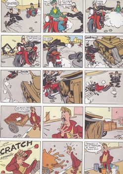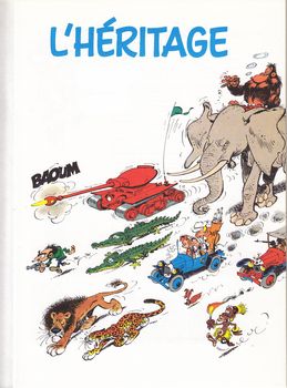 remarques: | collection Péchés de jeunesse, album avec dos carré blanc la première aventure de Spirou dessinée par Franquin en 1946 1/ le tank destructeur (1946) Fantasio achète un tank des surplus de l'armée américaine et cause une série de catastrophes pour finir par créer sa propre entreprise de destruction 2/ l'héritage (1946/1947) Spirou devient l'héritier d'un vieil oncle de province, il reçoit une maison hantée à Chahutemont, rencontre avec Gaspar le pseudo-fantôme qui révèle à Spirou l'existence d'un trésor en Afrique rendez-vous est pris avec l'explorateur Wellwell, le trio connaîtra de nombreuses péripéties avant de trouver le trésor qui s'avère être un immense stock de whisky >> p. 20 le notaire >> p. 28 le malfrat Gaspar à la jambe de bois n.b. contrairement à Fantasio, Spirou porte toujours des gants blancs >> premiers récits de Franquin, scénario et graphisme encore modestes, mais déjà pleins d'humour, de fantaisie et de subtilités Information Spirou et Fantasio est une série de bande dessinée publiée dans le Journal de Spirou, sa publication a commencé en 1938 et la série est devenue l'une des bandes dessinées franco-belges les plus populaires, considérée comme un classique au même titre qu’Astérix ou Tintin, elle met en scène les personnages de Spirou et Fantasio, reporters, accompagnés le plus souvent de l'écureuil apprivoisé de Spirou: Spip et, à partir du 4ème album, du Marsupilami, leurs aventures les amènent à affronter des gangsters divers et variés ainsi que des dictateurs et autres savants fous dans des aventures mêlant humour, science-fiction et fantastique les personnages éponymes (qui donne son nom à qqn, qqch) font partie des rares héros de la bande dessinée franco-belge à appartenir à leur éditeur et non à un auteur ou dessinateur, en particulier, et à ce titre sont passés entre les mains de divers auteurs engagés par l'éditeur pour continuer leurs aventures dont les plus connus sont André Franquin et le duo Tome et Janry la popularité durable du personnage de Spirou, qui donne son nom au magazine qui l’a vu naître, et de certains personnages secondaires, a entraîné la création de séries dérivées qui, parfois, ont connu un plus grand succès que Spirou et Fantasio: Gaston (premier album en 1960), Marsupilami (1987), Le Petit Spirou (1990), Zorglub (2017), Champignac (2018) et Supergroom (2019) une série de one shots, indépendants de la série officielle, sont regroupés dans la collection le Spirou de... dans laquelle certains des auteurs confirmés de la bande dessinée franco-belge rendent hommage à la série la série a également été adaptée en film, contes audios, série animée et jeux vidéo |