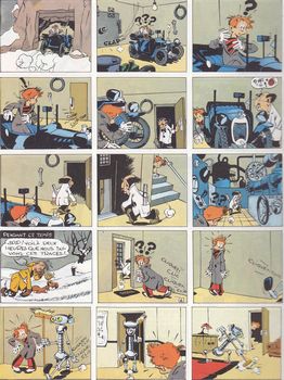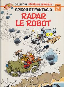 remarques: | dans la collection "Péchés de Jeunesse", dos carré blanc 1) la maison préfabriquée (1946) Fantasio, représentant de maisons démontables pour vacanciers, épisode de Jijé, puis repris par Franquin 2/ Radar le robot (1947) Spirou et Fantasio en vacances à la campagne sont confrontés par une voiture fantôme qui terrorise la population d'un village, Spirou réussira à percer le mystère de la voiture fantôme et à découvrir le repaire du savant-fou >> p. 29 le prof Samovar, le prototype du savant-fou, prélude à Zorglub >> p. 37 satire sur l'administration la tentative du savant-fou pour détruire le monde échouera grâce à Spirou, mais Radar le robot veut venger son maître et engage une course-poursuite sur Spirou et Fantasio, rien ne l'arrêtera ni mitraillette ni lance-roquette, mais en traversant une rivière son circuit-électrique tombera en panne 3/ le homard petit épisode inédit bien postérieur aux deux récits précédents avec le Marsupilami (le coup de soleil à la mayonnaise de Fantasio) - deuxième album de la série, proche du premier volume, un bon scénario, mais un graphisme moyen qui s'améliorera toutefois petit à petit, probablement le seul épisode (avec le robot) où Spirou fait preuve de violence pure (mitraillette, bazooka, etc), mais aussi le premier grand récit de Franquin |