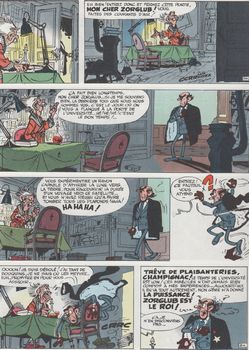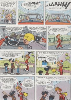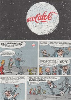remarques: | réédition de 1972, dos rond gris, dernier titre: du glucose pour Noémie, 63 pages, date originale 1961 titre complet: Z comme Zorglub, Z emmoc Bulgroz Fantasio est hypnotisé par un vulgaire sèche-cheveux, épisode de la voiture sans conducteur mais téléguidé qui finira mal, puis ce sera au tour de Spirou d'être hypnotisé visite de Zorglub chez son ancien collègue Champignac, offre de collaboration, refus de Champignac, menace de Zorglub et contre-attaque de Champignac, Zorglub hypnotise alors la populace de Champignac qui manifeste contre le comte, celui-ci réussira à les calmer grâce à son gaz soporifique X6 >> p. 16 l'arrivée de Zorglub à Champignac >> p. 20 le citoyen-ivrogne authentiquement champignacien: Dupilon >> p. 23 la Zorglumobile et le Zorgléoptère >> p. 27 les commandos zorglubiens >> p. 27 remarque de Pacôme, comte de Champignac du temps de sa femme, c'était la même chanson: Pacôme invente ceci pour ma cuisine, Pacôme invente cela pour ma lessive et Pacôme inventait Champignac invente une nouvelle formule contre Zorglub: le X8 potion à base de champignons qui détruisent tout par corrosion Fantasio enlevé par Zorglub subit un lavage de cerveau, on lui inculque aussi la zorglangue (langage à l'envers), mais Fantasio n'est cette fois pas hypnotisé grâce à l'antidote fourni par le comte de Champignac >> p. 37/38 le traitement subi par Fantasio avec l'agent Jérôme visite à Zorgland par Champignac (qui a réussi à repérer le repaire de Zorglub) et par Spirou pour délivrer Fantasio et détruire les installations de Zorglub Zorglub fait amende honorable et Champignac lui permet de réaliser l'opération "ice cold" = faire de la publicité sur la lune en écrivant Coca Cola sur la façe éclairée de la lune par projection depuis la terre, malheureusement, il y a erreur par les collaborateurs de Zorglub et l'annonce apparaît en zorglangue = Acoc Aloc >> un super album et surtout début d'un scénario et d'une idée exceptionnelle, le graphisme subit quelques petits changements mais reste toujours très bien élaboré |