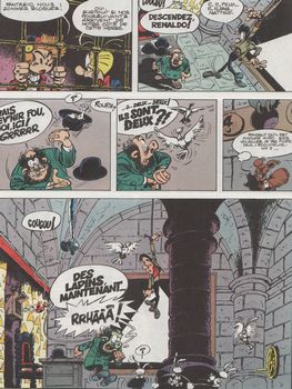 remarques: | réédition de 1974, dos rond rouge, dernier titre: Tembo Tabou, 54 pages, date originale 1972 visite de Charles Atan et de son acolyte Rinaldo du gang du Triangle, enlèvement du japonais Itoh Kata retenu prisonnier dans une abbaye truquée, démêlés avec la bande du Triangle qui aimerait voir Spirou et Fantasio faire partie de leur organisation >> p. 18 le village abandonnée de Peigneboeufs-les-Choux où se trouve l'abbaye truquée >> p. 39 les dons de prestidigitation de Itoh Kata >> rien de très intéressant dans cet album à part les tours de passe-passe de Itoh Kata, épisode toujours sans le Marsupilami remplacé maintenant surtout par Spip, premier album réduit à 54 pages au lieu de 62 pages |
