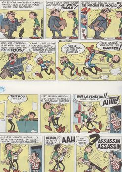 remarques: | réédition 1973 de l'édition originale de 1970, 61 pages, dos rond jaune, dernier titre au 4ème plat: R2, une moisson de gaffes côté en EO Euros 100.- au BDM des gaffes en vrac: - p. 21 première apparition de De Mesmaeker et ses contrats annulés - p. 25 le Gaston-Latex - p. 32 la différence entre être mou et être souple - p. 33 l'entrée fracassante de la vache à Gaston - p. 36 la vache qui rit - p. 40 les contrats plâtrés - p. 42 l'amour des cactus - p. 43 Kissifrott, l'hérisson - p. 51 le mastigaston >> un album aux gags de plus en plus perfectionnés, gags parus aussi dans dans deux albums petit format: gala de gaffes et gaffes à gogo |