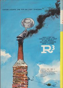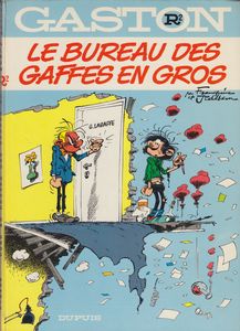 remarques: | réédition en 1973 de l'édition originale 1972, 54 pages, dos rond jaune, dernier titre au 4ème plat: R3, des coups fumants côté en EO Euros 70.- au BDM début des inventions loufoques de Gaston - p. 10 le porte-manteau électronique diabolique - p. 15 première apparition de M. Boulier - p. 20 la femme de ménage - p. 25 les jolies secrétaires Yvonne, Sonia, Suzanne et enfin Moiselle Jeanne qui deviendra un peu plus jolie par la suite - p. 29 l'appeau pour la chasse au plombier-zingueur - p. 37 la seule fois où De Mesmaeker signa les contrats mais c'étaient les faux - p. 39 le perroquet de Gaston - p. 41 apparition de Laprune - p. 46 Gaston et son bombardon >> un bon album plein de gaggaffes, la série commence à atteindre sa vitesse de croisière, avec des gaffes inédites en album et parues dans l'album petit format: gaffes en gros le graphisme s'améliore également |