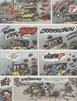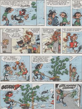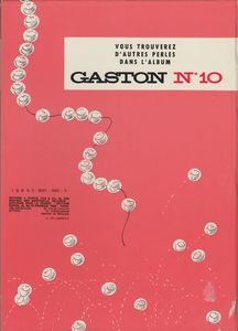 remarques: | réédition en 1974 de l'édition originale de 1971, 54 pages, dos rond rouge, dernier titre au 4ème plat: no 10, autres perles côté en EO Euros 100.- au BDM >> p. 4 pour une fois, la gaffe ne vient pas de Lagaffe et le gaffophone résiste aux termites >> p. 6 Gaston déguisé en Marsupilami >> p.10 Gaston protège la nichée de Cheese, sa petite souris grise >> p.12 apparition de la mouette rieuse (attaques aériennes) et du chat de gouttière (attaques terrestres) >> p.17 les jeux adorés par tous du chat et de la mouette >> p.20/21 l'additif contagieux dans la benzine utilisée pour le vieux tacot de Gaston >> p.25 la machine à faire des ronds de fumée >> p.29-32 Gaston et son cactus >> p.33 le cri de la mouette rieuse: HIHIHAÂR >> p.34 le chat botté >> p.37 Gaston, défenseur et protecteur des animaux >> p.48 les contrats devenus inutiles >> p.52 l'alarm-clock-radio >> probablement le meilleur album de la série, les gags deviennent de plus en plus percutants, notamment avec ceux du chat et de la mouette, de plus un très bon graphisme et une superbe couverture d'album avec les mignons de Gaston |