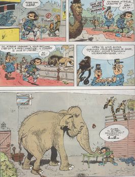 remarques: | réédition en 1973 de l'édition originale 1972, 54 pages, dos rond orange, dernier titre au 4ème plat: no 11 un cerveau fumeux, côte en EO Euros 80.- au BDM >> p. 6 l'araignée monstrueuse >> p. 8 le fameux juron du rédacteur Prunelle: Rrogntudju.. >> p. 9 la machine à répondre au courrier en retard >> p.10/12 l'appareillage pour distribution automatique = le monorail >> p.20 à nouveau Gaston et son cactus >> p.23 Gaston et le putois >> p.27 Moiselle Jeanne devient vraiment sexy >> p.38 guano nuevo >> p.44 les murs ont des oreilles >> rebelotte avec un album toujours très superbe, à noter: Franquin commençe à personnaliser ses signatures en bas de page avec une petite caricature distinctive et appropriée au gag |