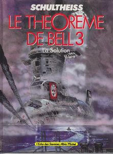 remarques: | Shalby est maintenant continuellement poursuivi par l'organisation et après avoir délivré la nana d'Amselstein des griffes de son maquereau, le duo s'enfuit à nouveau à travers le port d'Hamburg sous la neige course-poursuite à pied, en bateau aidé par le fameux remorqueur piloté par Frank, le détenu du centre médical d'Utah qui probablement a été frappé par le théorème de Bell finalement en utilisant un ascenseur souterrain(?), Shalby trouvera la solution du théorème: un énorme sous-marin nazi où est installé un laboratoire similaire à celui du Labrador, mais ce n'est qu'une illusion >> p. 45 la masse du sous-marin et le mot de la fin pour l'album: "notre vie n'est qu'une illusion, la réalité c'est ce que nous croyons être vrai" >> ce dernier tome se perd dans les méandres de la spirale du théorème de Bell sans grande explication, toutefois moins de copulation dans ce dernier album de la série dont le déroulement n'est qu'une fuite en avant sans grand but, un album qui termine pauvrement la série qui avait pourtant assez bien commencé avec un graphisme qui ne change guère à part une couverture d'album bien dessinée n.b. le théorème de Bell (qui tend à prouver que toute partie de l'univers est en relation cachée et instantanée avec tout autre partie) a bel et bien existé et en 1964, Bell a démontré une inégalité valable valable pour tout système déterministe local (variables cachées selon le paradoxe EPR), toutefois les expériences sur le paradoxe EPR d'Alain Aspect en 1982 ont montré que les inégalités de Bell sont violées en physique quantique (ce qui a aussi été traité par Einstein); les particules du théorème de Bell ne peuvent toutefois avoir une influence directe l'une sur l'autre que par son environnement immédiat, mais alors pour les particules intriquées (intimement liées), l'espace n'existerait plus >>> en tout cas dans ce dernier volume, les relations de Shalby sont elles aussi continuellement violées |