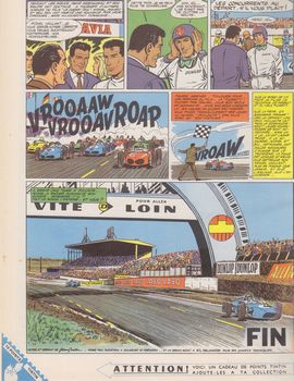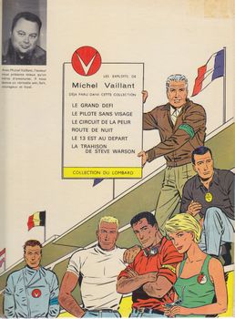 remarques: | Michel Vaillant se lance dans le cinéma et devient cascadeur pour accidents de voiture, dans cet album entre un camion et une voiture, mais un saboteur (un ancien concurrent) lui rend la vie difficile album 1964, 64 pages, dernier titre: la trahison de Steve Warson, valeur indiquée = 50% du BDM (Euros 100.-) n.b. les trois précédents albums: - tome 4 route de nuit (1962) - tome 5 le 13 est au départ (1963) - tome 6 la trahison de Steve Warson (1964) ne sont pas collectionnés sur le site tout comme les autres albums à partir du tome 8 jusqu'au tome 74: 24 heures sous influence (2007) |