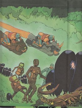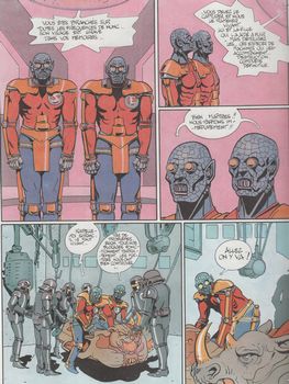 remarques: | la suite des aventures fantasmagoriques dans le monde de Perp Nunc, le mystérieux scientifiste des étages supérieurs est condamné à l'harmonium pour avoir semé le désordre dans les étages inférieurs tandis que son espion Ussup se détraque, mais Luz la femme-aveugle, amie de Nunc réussit à délivrer Nunc grâce aux cracheuses oniriques >> p. 13 la soupe à l'harmonium = lavage de cerveau Egon et Shrank, les robots pefectionnés des maîtres, partent à la poursuite de Nunc, de Luz ainsi que de Coderc et Baixas qui se sont joints à Nunc et Luz >> p. 26 sauvé par un langouroux batelant et >> p. 48 retour à la case départ >> scénario et graphisme qui se détraquent à leur tour sans grand espoir de retour |