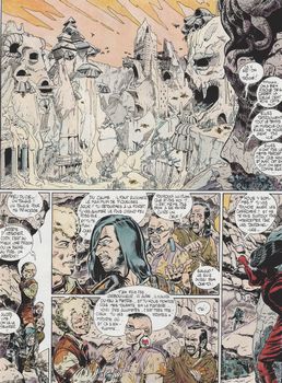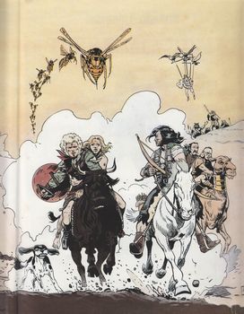 remarques: | avec Simac, Joseph et Marie, Coderc et Baixas quittent définitivement le monde de Perp, appelé aussi l'Inde chez les rebelles, pour de nouvelles aventures tout aussi stupides ils sont accompagnés cette fois dans leurs aventures d'Azur et d'Angyne, deux personnages qui représentent les auteurs Ramaïoli et Durand (n.b. ce qui d'ailleurs n'améliore pas du tout le développement du récit) rencontre avec les mutants puants, puis avec la mascotte Toto de "front de fer", enfin on arrive chez le roi des volants où Coderc et Baixas recoivent comme mission de délivrer la princesse, mais pour cela il faut encore affronter les chévêcheurs (sic) et les guêpes dardanelles >> p. 37 le nid des dardanelles arrivés au but après bien des déboires, stupéfaction: la princesse c'est Télée >> le dernier et le pire album de la série, c'est du n'importe quoi et même du réchauffé des tomes 1 et 2, un 6ème tome annoncé: "le bal des sirènes" ne paraîtra plus et on comprend pourquoi tout comme la série "l'indien français", cette série post-atomique finit en apocalypse malgré un début assez prometteur |