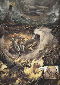 remarques: | prélude le dieu Wotan dans son domaine d'Asgard = domaine des dieux Gungnir, la lance sacré de Wotan Yggdrasil, le puissant arbre frêne, les Nibelungen qui vivent au Nibelheim, le pays souterrain des brumes et des glaces l'anneau maudit, anneau au grand pouvoir, façonné par Albéric, le roi-forgeron qui vola l'or des Nibelungen; l'anneau devenant l'enjeu de nombreux personnages n.b. quelque peu le résumé de l'album 0 le roi de Xanten, de la race des Völsung, meurt au combat contre les huns de Siggeir le fils du roi de Xanten, Siegmund, prend le pouvoir avec sa soeur jumelle Sieglinde, mais tous deux sont capturés par Siggeir qui veut prendre Sieglinde comme épouse Brunhilde, la walkyrie fille de Wotan, reproche à son père de n'être pas intervenu pour préserver le Volsung Siegmund et sa soeur, issus d'une liaison infidèle de Wotan avec Freia, la déesse de la fécondité Fricka, l'épouse de Wotan, veut punir Siegmund et Sieglinde qui s'adonnent à l'inceste; en prenant l'aspect de la déesse végétale Khosada, Fricka ordonne à Siggeir d'exécuter le frère et la soeur >> p. 31 Wotan qui offre son oeil aux trois nornes ou dises qui régissent les destins pour connaître l'avenir sur terre, Siegmund réussit à s'emparer de l'épée Nothung avec l'aide de Brunhilde et veut défier Siggeir >> p. 40/41 le duel entre Siegmund et Siggeir Wotan sacrifie son bâtard Siegmund pour garder en vie Sieglinde et son enfant issu de Siegmund qui deviendra Siegfried, le héros des Nibelungen, seul capable de détruire le dragon Fafner et pour punir Brunhilde qui a désobéi à Wotan en fournissant l'épée Nothung à Siegmund et qui a mis Sieglinde à l'abri de Wotan, celui-ci endort Brunhilde, elle ne sera réveillée que par un homme fort et courageux (ce sera Siegfried) >> p. 51 à 57 tableaux explicatifs sur le monde des Nibelungen, légende issue de la mythologie germanique dont Wagner s'inspirera pour créer deux de ses opéras: l'anneau des Nibelungen et le crépuscule des dieux >> ce volume sera le premier tome qui fera l'objet d'une série BD sur la légende des Nibelungen, en genre heroïc-fantasy (n.b. en juillet 1009 paraîtra le tome 0 donnant quelques explications supplémentaires en préambule), un graphisme très respectable et aussi un scénario intéressant avec un texte bien élaboré (à comparer avec les quatre volumes de l'anneau du Nibelung produits par Renoncé/Sadoul) n.b. le Walhalla = palais de Wotan où étaient conduits par les walkyries les héros morts les plus méritants Loge (Loki, le feu) et Donner (Thor, tonnerre = le plus fort des hommes et des dieux) étaient tous deux fils de Wotan mais Loge, fils des Géants fut adopté par Wotan, Loge était le dieu de la ruse et de la sournoiserie les Nibelungen = enfants de l'obscurité, ils possédaient d'immenses richesses qu'ils tiraient de leurs mines d'or de Nibelheim le dragon = gardien des mythes ancestraux |