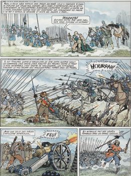 remarques: | titre complet: Wallenstein, les années du diable 1/ le trésor de Morave 1617, défénestration de Prague, début de la guerre de 30 ans entre catholiques (Ferdinand II d'Habsburg, empereur d'Autriche avec Wallenstein) contre les protestants (Gustave Adolf de Suède, Christian IV du Danemark, alliés aux états protestants du nord de l'Allemagne), Wallenstein s'empare du trésor de la Moravie et l'amène à Vienne 2/ le pont de Dessau en 1625, après la défaite de la Montagne Blanche, les forces protestantes se reconstituent autour de Christian IV roi du Danemark, d'Ernest de Mansfeld et de Christian Brunswick au nord de l'Allemagne, la Sainte-Ligue catholique est commandée par Jean de Tilly alors que Wallenstein commande sa propre armée >> p. 13 la forteresse de Dessau avec son pont fortifié sur l'Elbe en 1626, les forces protestantes de Mansfeld lancent une offensive sur Dessau, l'armée de Wallenstein se porte à sa rencontre, Wallenstein laisse Mansfeld attaquer, puis par ruse prend l'armée des protestants à revers, défaite de Mansfeld et plus tard en 1628 Wallenstein deviendra pratiquement le véritable maître de l'Empire 3/ la mort noire en 1627, Wallenstein défait les troupes de Christian IV, il s'empare du Mecklembourg, du duché de Holstein, du Slesvig (= Schleswig) et du Jutland, il met le siège devant le port de Stralsund en Holstein = un point stratégique, mais Wallenstein ne peut conquérir Stralsund, toutefois Christian IV doit capituler et accepte de négocier, entretemps, des bandes de pillards ravagent le pays déjà ruiné, c'est la famine, ce sont les épidémies, surtout la peste = la mort noire, ce seront les années du diable 4/ le roi des neiges suite aux fourberies à la cour autrichienne, Wallenstein devient l'un des personnages les plus haïs de l'Empire, Ferdinand II révoque Wallenstein, mais le rappelle en 1631 lorsque le roi suédois Gustave Adolf avance vers le sud de l'Allemagne après avoir battu Tilly qui meurt à la bataille de Breitenfeld (septembre 1631), le choc entre les armées de Wallenstein et de Gustave Adolf aura lieu à Lützen (près de Leipzig) le 6.11.1932 >> p. 31 Wallenstein croit beaucoup aux prévisions astrologiques et s'entourent de nombreux médecins-astrologues tel son conseiller Seni la bataille commence, mais Gustave-Adolf n'a pas voulu endosser sa cuirasse suite à une ancienne blessure qui le fait encore souffrir, Dieu sera sa seule protection, mais ce manque de protection causera aussi sa perte, les suédois prennent l'avantage, mais le comte de Pappenheim (le capitaine de Wallenstein) arrive avec des renforts et repousse les forces suédoises, Gustave-Adolf fait alors donner sa deuxième ligne, Pappenheim est tué au combat et à 13.00 heures, c'est au tour de Gustave-Adolf de périr dans une escarmouche, les soldats de Wallenstein le dépouillent sans le reconnaître >> p. 37 la mort de Gustave-Adolf Bernard de Saxe-Weimar reprend le commandement et lance une contre-attaque pour venger Gustave-Adolf, Wallenstein doit se replier, mais il sait que la mort de Gustave-Adolf signifie la fin de l'expédition suédoise 5/ le complot Wallenstein devient trop puissant et se livre à des tractations suspectes avec les électeurs de Saxe et de Brandebourg et même avec Richelieu, c'est un homme désemparé, il est accusé de trahison et destitué par Ferdinand II en 1634, abandonné par son armée, Wallenstein prend la fuite et se réfugie à Egger où un groupe d'officiers fidèles à l'empereur préparent un complot et le trahissent après avoir assassiné lors d'un banquet les derniers officiers qui étaient restés fidèles à Wallenstein, Wallenstein sera abattu comme un chien dans sa chambre le 25.2.1634 en fin d'album: sur les traces de Wallenstein >> portrait d'un homme de guerre de valeur, d'un personnage indompté, mais aussi mystérieux qui croit beaucoup à l'astrologie entouré de ses médecins-astrologues, un bon album historique tant du point de vue texte que graphisme |