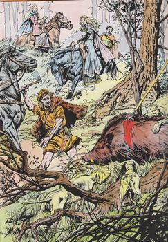 remarques: | édition Hachette pour la Jeunesse, série Histoire Juniors, texte Gaston Duchet-Suchaux, illustrations Patrice Pellerin 1/ avant Charlemagne après les grandes invasions, Charles Martel rétablit le pouvoir royal à son profit (Poitiers 732) 2/ fils de roi Pépin le Bref, fils de Charles Martel, fonde la famille royale des carolingiens en se proclamant roi, il remplace la dynastie des mérovingiens en se débarrassant de Childéric III successeur de Clovis n.b. mérovingien = descendant de Mérovée, un héros légendaire >> p. 5 le sacre devenu officiel dès le couronnement de Pépin le Bref (754) 3/ l'homme et le roi 768 mort de Pépin le Bref, ses fils: a) Charles (qui prendra le nom de Charlemagne = Charles le Grand = en latin Carolus Magnus) et Carloman se partagent le royaume >> p. 6 description de Charlemagne (qui aimait beaucoup aussi se baigner) 4/ au secours Charlemagne première campagne en 774 contre les Lombards pour protéger le pape Adrien Ier, Charlemagne bat Didier, roi des Lombards et restera un allié fidèle de l'Eglise 5/ l'armée et la guerre 6/ Roncevaux 778 expédition dans le nord de l'Espagne qui tourne mal et retraite de Charlemagne dont l'arrière-garde se fait massacrer par les Basques et les Arabes dans le défilée de Roncevaux cet épisode donnera naissance à une légende chantée au Moyen Age par un poète dans la "chanson de Roland" 7/ Charlemagne et les Saxons après 33 ans de guerre cruelle, Charlemagne soumet les Saxons du chef Widukind qui doivent se convertir au christianisme, 782 massacre de Verden >> p. 15 la destruction du chêne sacré Irminsul >> p. 16/17 carte de l'empire de Charlemagne 8/ Aix-la-Chapelle en 797, celle-ci devient la capitale de l'empire 9/ Charlemagne à l'école il fait organiser des écoles auprès des monastères pour tenter d'arracher le peuple à sa profonde ignorance, il fait aussi développer l'art des manuscrits (écrit à la main) en créant une écriture nouvelle: la minuscule caroline agrémentée de superbes enluminures (peintures qui décorent les manuscrits du Moyen-Age) n.b. il est maintenant notoire que Charlemagne savait lire et écrire, il aura même composé des poèmes et des chansons liturgiques 10/ - à Charles Auguste, vie et victoire en 800, Charlemagne est couronné empereur d'Occident (roi des rois) par le pape Léon III 11/ à la cour de Charlemagne les membres de la cour de Charlemagne dont son conseiller Alcuin (savant religieux originaire d'Irlande qui s'occupe surtout des écoles) et qui souvent n'est pas du même avis que Charlemagne >> p. 25 l'ambassade d'Haroun-al-Rachid, calife de Bagdad 12/ comment il gouvernait comtes (200 comtés) et évêques devaient obéissance à l'empereur par serment de fidélité et étaient contrôlés par des envoyés spéciaux de l'empereur: les "missi dominici" 13/ Charlemagne, héros de légende après la mort de Charlemagne à 72 ans (814), invasion des vikings ou Normands, apparition de la peste et autres calamités son fils Louis lui succède, son règne fut marqué par la guerre civile que se livrèrent ses fils >> un petit résumé de la vie de Charlemagne fort instructif pour l'éducation, mais surtout de jolies illustrations par Pellerin (Barbe Rouge et l'Epervier) |