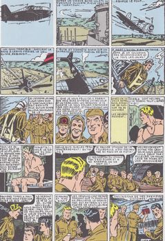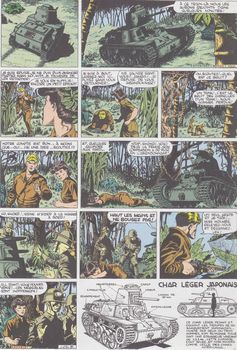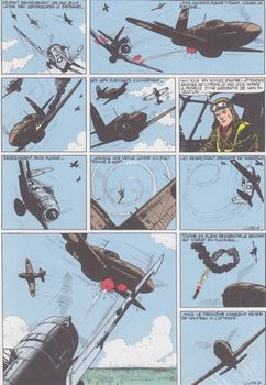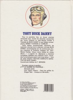 remarques: | album intégral réunissant les tomes 1,2 et 3 série d'aventures d'aviation avec les pilotes Buck Danny, Sonny Tuckson et Tumbler, bien dessiné par Hubinon et surtout un bon scenario par Charlier Hubinon >> voir CBD no 35 série Barbe Rouge Charlier >> Voir CBD no 37 série Blueberry intégral regroupant les 3 premières aventures de Buck Danny (les japs attaquent = 51 planches, mystères de Midway = 54 planches et la revanche des fils du ciel = 60 planches) + un récit inédit en N+B: l'agonie du Bismarck >> les 2 premiers volumes donnent un bon aperçu des premiers combats navals dans le Pacifique, scenario bien documenté (Nouvelle Guinée, Guadalcanal, mer de Corail et Midway), le 3ème volume commence les aventures de Buck Danny en mission en Chine avec les "Flying Tigers" à noter que la série de Buck Danny comprend 61 albums de 1948 à 2025, le dernier intitulé "traque en haut altitude" (2025) Information les Aventures de Buck Danny est une série de bande dessinée franco-belge d'aviation créée par Jean-Michel Charlier et Victor Hubinon, parue entre 1947 et 2008 dans l'hebdomadaire Spirou et publiée en 60 albums depuis 1948 par l'éditeur belge Dupuis ses héros (de fiction) sont trois aviateurs militaires américains (Buck Danny, Sonny Tuckson et Jerry Tumbler) qui, aux commandes de leurs avion qui vivent de nombreuses aventures, leurs péripéties couvrent, entre autres, la majorité des conflits auxquels ont participé les forces armées américaines, depuis la Seconde Guerre mondiale jusqu'à la guerre de Bosnie Georges Troisfontaines participa également à cette création mais de manière très limitée, accessoire et non significative (quelques planches du premier album) au cours des années 1940, Victor Hubinon et Jean-Michel Charlier travaillent séparément pour la World Press, une agence belge dirigée par l'homme d'affaire Georges Troisfontaines, celui-ci leur propose de s'associer, les deux hommes signent tout d'abord l'agonie du Bismarck, un récit de guerre sur la poursuite du cuirassé Bismarck qui est publié dans le Journal de Spirou en 1946, ils réalisent également Tarawa: atoll sanglant, un récit historique publié en Belgique de fin 1948 à fin 1949 dans l'hebdomadaire Moustique et qui relate la prise de l'atoll de Tarawa dans le Pacifique par les troupes américaines Hubinon et Charlier poursuivent leur collaboration avec la création de la série Buck Danny dont la première aventure parait dans Spirou à partir du no 455, Georges Troisfontaines est encore présent aux débuts de la série, écrivant les douze premières planches des japs attaquent, mais il n'interviendra plus par la suite pendant leurs débuts, ou période de "vaches maigres" comme aimait à le dire Jean-Michel Charlier, Victor Hubinon passait des heures sur son carnet de brouillons afin de ne pas perdre la main et ils partageaient le couchage de la sorte: "à toi le matelas, à moi le sommier" (Jean-Michel Charlier) en 1979, Victor Hubinon décède des suites d'un cancer, après quelques années d'interruption, Buck Danny reprend du service, animé cette fois par Francis Bergèse, déjà connu du monde aéronautique la série s'est toujours caractérisée par un réalisme extrême des appareils volants dessinés, faisant apparaître les innovations marquantes dès qu'elles étaient connues: appareil VTOL (à décollage et atterrissage vertical), avions furtifs, appareils russes à effet de sol, etc la rédaction de Spirou s'en amusait tellement qu'elle monta un jour un canular où l'on voyait Victor Hubinon interpellé à son domicile par la CIA souhaitant savoir comment il obtenait une documentation aussi précise! les bases militaires (et navales) où sont situées ces aventures ainsi que les bâtiments à bord desquels elles se déroulent sont également pris dans la réalité, correctement et fidèlement décrits: porte-avions de l'US Navy et leurs escorteurs mais aussi des unités aéronavales russes et françaises pour certains épisodes, des événements véridiques ne servent pas seulement de cadre contextuel, mais également de thème principal, ainsi en est-il de la guerre de Bosnie ou la guerre de Corée, toutefois, pour des raisons politiques (il n'était alors pas idéologiquement correct d'évoquer ce conflit en favorisant le point de vue américain alors même que les forces françaises avaient participé à ce conflit), les deux albums traitant de la guerre de Corée furent interdits en France de 1954 à 1968; pour éviter d’encourir à nouveau le risque d’une telle censure, Jean-Michel Charlier inventa par la suite des pays fictifs, cette astuce lui donna une plus grande liberté vis-à-vis de l'image qu'il pouvait en donner et les événements qu'il pouvait y placer; ainsi en ira-t-il du "Managua", état imaginaire repris d'un épisode de Tanguy et Laverdure qui apparut dans les trois premiers albums de Francis Bergèse, puis dans deux autres réalisés après le décès de Charlier le réalisme de la bande dessinée apparaît également dans la documentation technique accompagnant la série: des dispositifs aéronautiques sont expliqués et schématisés pour le lecteur afin qu'il comprenne la série sans forcément être spécialiste (la radiogoniométrie est ainsi expliquée dans un album, l'approche aux instruments dans un autre, etc.), de même certains appareils sont détaillés et accompagnés d'une petite notice explicative avec un historique et les principales caractéristiques en revanche, la longueur de la carrière militaire des trois héros, de la guerre du Pacifique à nos jours, est fort irréaliste, surtout si l'on songe qu'ils sont censés risquer leur vie à chaque page, on voit notamment qu'ils ont commencé à piloter les P-40 des Tigres Volants et pilotent actuellement les avions furtifs F-22, certes cette longévité est caractéristique de nombreux héros de bande dessinée, comme Tintin, mais celui-ci n'évolue pas dans 