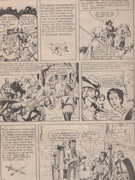 remarques: | 1157, Henri II d'Angleterre surnommé Plantagenêt parce qu'il ornait son béret d'une branche de genêt, il possédait alors 1/3 de la France, son fils Richard est placé comme page à la cour de Louis VII, il deviendra roi d'Angleterre à l'âge de 32 ans, c'est le début des croisades >> p. 12 la dîme de Saladin pour financer les croisades en Terre Sainte, Richard obtient une grande renommée comme combattant courageux et les sarrasins le surnomment "coeur de lion", mais malgré ses succès, il échoue au siège de Jérusalem et de plus son ménestrel Blondel de Nesle l'avertit que son frère Jean sans Terre complote contre lui avec Philippe-Auguste qui, lui, est entretemps rentré de croisade, en 1992 une trève de trois ans est conclue avec Saladin s'en suit le retour mouvementé de Richard à travers l'Europe, puis Richard avec ses alliés de Toulouse, Bretagne et Flandre guerroie en Normandie contre Philippe-Auguste >> p. 27 l'accord avec Philippe-Auguste sous l'orme de Gisors mais Richard était plus apte à faire la guerre qu'à diriger un pays >> p. 31 le jugement de Dieu et lors d'une expédition contre le comte de Limoges en assiégeant le château de Châlus, Richard est blessé et meurt de sa blessure (1199) à la mort de Richard Ier, rivalité entre Arthur de Bretagne et Jean sans Terre qui réussit à se débarrasser de son rival et monte sur le trône d'Angleterre >> un récit sur Richard Coeur de Lion bien enjolivé pour la jeunesse, mais qui ne respecte pas toujours l'histoire réelle tel que ses relations difficiles avec son père Henri II et le côté quelque peu homosexuel de Richard, toutefois un récit assez agréable à la lecture + en fin d'album, les aventures de Petzi l'ourson et de ses amis: Pingo le pinguin et Riki le pélican aux pyramides par le dessinateur Vilh. Hansen n.b. au sujet du roi Richard Ier, voir aussi - l'excellente série "l'empereur du dernier jour" par Boubé - l'épée et la croix (série histoire de l'histoire) - le Coeur de Lion (un seul volume paru sous le titre coeur de lion) - Guillaume le Maréchal (série biographie) |