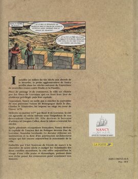 remarques: | fondation de Nancy vers 1050 sur la rivière Meurthe par Gérard Ier duc de Lorraine à un croisement de routes importantes entre l'Italie et les Flandres, après coup, la cité se développe rapidement, le duc de Lorraine devient vassal du roi de France après la guerre de Cent Ans, Nancy et la Lorraine deviennent un enjeu politique entre France et Bourgogne, René de Lorraine dont la soeur est mariée à Charles VII passe au côté de la France, mais il est battu par Philippe II de Bourgogne et doit payer rançon ainsi que donner des concessions territoriales à Bourgogne, mais la Lorraine restera indépendante >> p. 8 Preny, preny = cri de guerre des ducs de Lorraine n.b. Charles VII visite souvent René de Lorraine et c'est à Nancy qu'il découvrira sa maîtresse: la demoiselle de Fromenteau = Agnès Sorel Charles le Téméraire veut annexer la Lorraine pour rétablir l'ancien royaume de Lotharingie, en 1475, Charles occupe Nancy et en fait la capitale de la Nouvelle Lotharingie, mais après sa défaite contre les suisses, René de Lorraine récupère ses domaines >> p. 16-17-18 bataille de Nancy et mort de Charles le Téméraire suite aux guerres de religion, Nancy est puissamment fortifiée en 1588 ( = le grand projet), elle devient un foyer de la contre-réforme catholique >> p. 22 le développement de Nancy en 1633 Louis XIII et Richelieu font occuper la Nancy de Charles IV pour prévenir une offensive des impériaux, puis la peste frappe la cité, l'essor démocratique est stoppé net en 1736, Louis XV offre la Lorraine au roi polonais exilé, Stanislas Leszcynski, un souverain capable qui développe Nancy et qui fera la renommée de la ville, mais à sa mort, la Lorraine devient à nouveau province française, à la Révolution, Nancy devient le chef-lieu du département de la Meurthe en 1852, inauguration de la voie ferrée Paris-Nancy-Strasbourg, durant la guerre franco-allemande de 1870, la Lorraine est divisée: Metz annexée en zone allemande, Nancy en zone française, durant la guerre 14-18, Nancy ne sera pas occupée par les allemands et la Lorraine en entier retourne à la France (avec l'Alsace à la fin de la guerre) Lyautey, né à Nancy en 1854, Otto de Habsburg est le descendant des ducs de Lorraine >> récit assez intéressant sur l'histoire de la ville de Nancy, le graphisme restant acceptable, fait partie de la collection "histoire des villes" dont Lille, Amiens, Boulogne, Reims et Orléans (non collectionnés ici) |