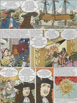 remarques: | titre complet Louis XIV le roi-soleil 1638-1643/1715 1/ tableau chronologique 1638-1715 2/ préface par Reynald Secher, docteur ès lettres Louis XIV, le roi le plus connu de France, dès son enfance, il est mis en contact avec les intrigues qui animent la cour et réagira en conséquence quand il gouvernera son emblème: le soleil sa devise: nec pluribus impar (supérieur à tous) il a règné durant 72 ans et il a su s'entourer d'hommes de valeur, il meurt à 77 ans 3/ Louis XIV naissance en 1638 de Louis "dieudonné" (car don de dieu), un fils longtemps attendu, à la mort de Louis XIII, Anne d'Autriche devient régente et gouverne avec Mazarin 1648 début de la Fronde, Mazarin s'occupe avec soin de la formation du futur roi, Mazarin fait tomber Fouquet et fait placer Colbert paix avec l'Espagne, Louis doit marier l'infante Marie-Thérèse pour raison politique mais son coeur est ailleurs 1661 mort de Mazarin, Louis règnera alors en souverain absolu sans premier ministre >> p. 17 l'affaire Fouquet la même année, début de la construction de Versailles qui durera 7 ans, naissance aussi de Louis le grand Dauphin qui mourra avant Louis XIV (le grand dauphin sera le grand-père du futur Louis XV) tout comme le fils du grand dauphin Louis de Bourgogne dont le fils (le futur Louis XV) a deux ans à la mort de Louis XIV (arrière-grand-père de Louis XV), la Régence sera assumé par Philippe d'Orléans, petit-fils de Louis XIII et neveu de Louis XIV Philippe d'Orléans n'était pas aimé par Louis XIV, mais il se révèlera un souverain éclairé Colbert développe le commerce, notamment maritime et dote la France d'une puissante flotte de guerre 1667-1668 guerre avec l'Espagne pour l'héritage de Marie-Thérèse d'Autriche (Pays-bas espagnol, Picardie, Franche-Comté) >> p. 22 construction de la ceinture de fer par Vauban, Louvois est ministre de la guerre 1672 guerre anglo-française contre la Hollande, l'Empire et l'Espagne soutiennent la Hollande, la guerre durera 10 ans et les corsaires tel que Jean Bart et Duquesne y jouent un rôle important la Franche-Comté devient française, Louis XIV est appelé le roi-soleil les arts se développent - la littérature avec Bossuet, Fénelon, Corneille, Racine, Molière, Rochefoucauld, la Fontaine, Perrault - la musique avec Lully et Couperin - la peinture avec Poussin, Charles le Brun, Rigaud - l'architecture avec le Vau et Gabriel le Nôtre - les mathématiques avec Blaise Pascal routes et communications sont améliorées, le canal du Midi via Sète-Toulouse-Bordeaux est construit ce qui évite le cabotage par Gibraltar (cabotage = navigation entre les ports d'un pays ou le long des côtes) l'exploration s'étend à la Nouvelle France (Canada) et à la Louisiane (Nlle Orleans) ainsi qu'aux Indes et à l'Afrique >> p. 32 les maîtresses du roi - madame de Montespan - Angélique de Fontanges - Louise de la Vallière - Françoise d'Aubigné dit la Scarron et qui mariée à Louis XIV deviendra madame de Maintenon 1683 mort de Marie-Thérèse influençé peut'être par la dévote Maintenon, Louis XIV s'en prend aux Huguenots, création du corps des dragonnades surtout pour réprimer les révoltes internes, la révocation de l'Edit de Nantes provoque l'émigration massive d'une élite intellectuelle et même le pape critique les brutalités des dragons de Louis XIV l'Alsace, le Piémont, les Pays-bas espagnols et la Picardie sont annexés, nouvelle coalition contre la France 1690 l'armée française commandée par le maréchal de Luxembourg gagne plusieurs victoires, mais sans remporter de réelle décision, les finances sont catastrophiques et la population souffre de la famine, la paix est signée à Ryswick en 1697 à la mort de Charles II d'Espagne (1700), une nouvelle guerre (1701-1712) se déclanche, celle de la Succession d'Espagne (Charles II n'ayant pas eu d'enfants) Philippe, 2ème fils de Louis le grand dauphin, a été désigné par Charles II comme héritier sous le titre de Philippe V d'Espagne, Louis XIV accepte le testament, mais de nombreux souverains européens tel l'empereur Léopold Ier le refuse et une nouvelle coalition se dresse contre la France et l'Espagne 1704 l'Angleterre s'empare de Gibraltar la guerre se termine en 1712 à la paix d'Utrecht, Philippe V devant renoncer à ses droits sur la couronne de France, la Hollande perd sa puissance maritime et c'est l'Angleterre qui prend sa place 1711 mort de Louis le grand Dauphin 1712 mort de son fils Louis, duc de Bourgogne seul subsiste, Louis de France, duc d'Anjou, fils de Louis duc de Bourgogne qui sera le futur Louis XV = arrière-petit-fils de Louis XIV qui meurt en 1715 >> une biographie tout-à-fait intéressante de Louis XIV, mais il faut savoir s'y retrouver dans les méandres de sa famille (descendants et héritiers), dans ses maîtresses et dans ses guerres, il sera le symbole du pouvoir absolu (l'Etat c'est moi) >> un album intéressant avec un graphisme respectable |